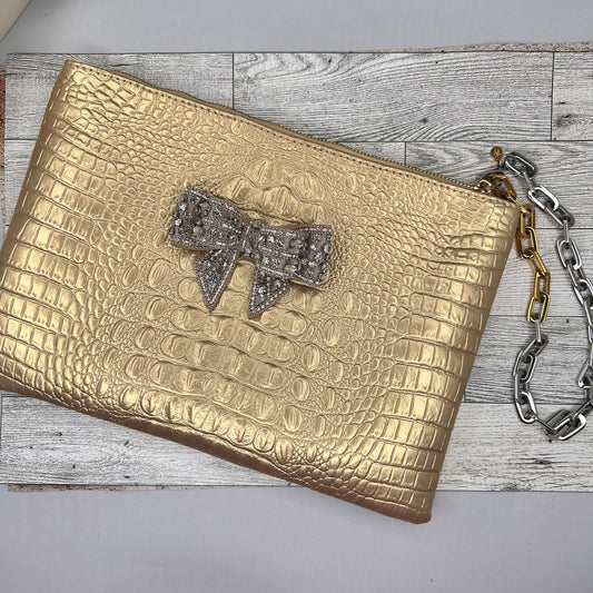 Black Clutch with Silver Bow and Silver embellishment | Erika Williner Designs