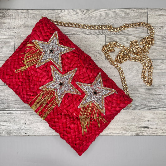 These gorgeous straw and raffia clutches are handmade & embellished.