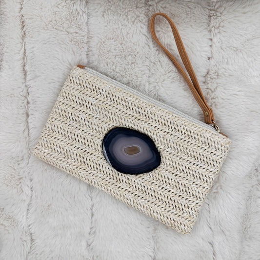 Straw Clutch with Hand Painted Genuine Oyster | Erika Williner Designs