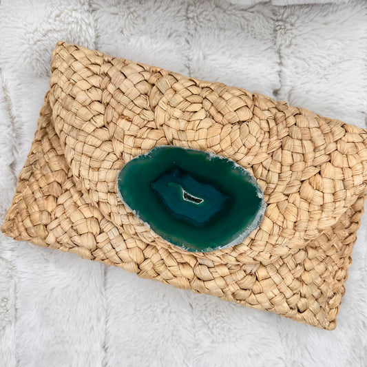 Green Straw Clutch with Acetate Coral Detail 520-04 | Erika Williner Designs