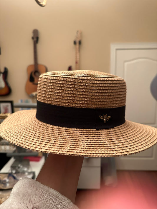 Straw Hat with a Slack Ribbon and a Small Bee 600-01 | Erika Williner Designs
