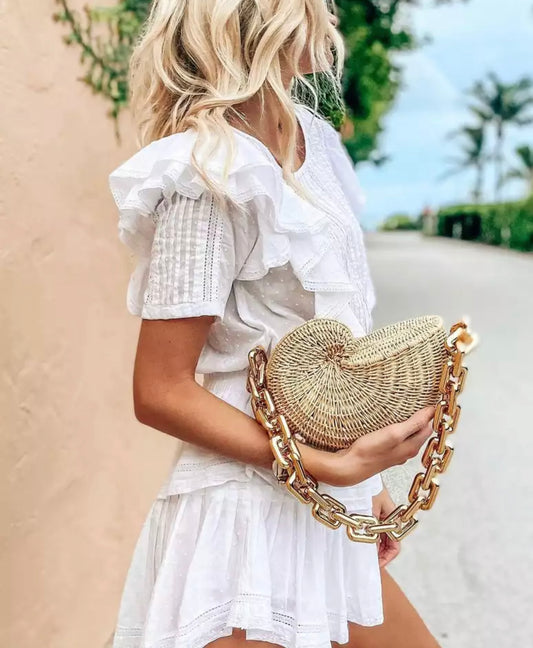 Rattan Purse with acrylic chain link 530-2 | Erika Williner Designs