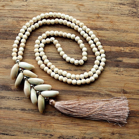 Long Necklace with Pearls, Druzy and Green Tassel | Erika Williner Designs