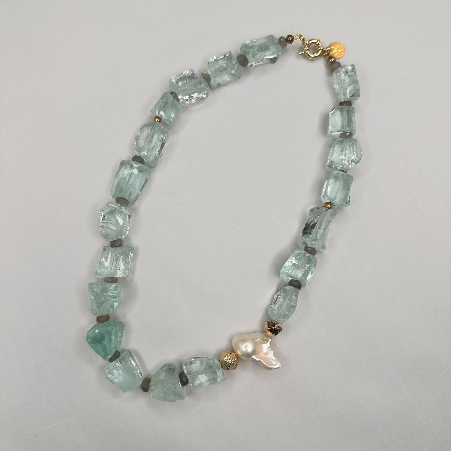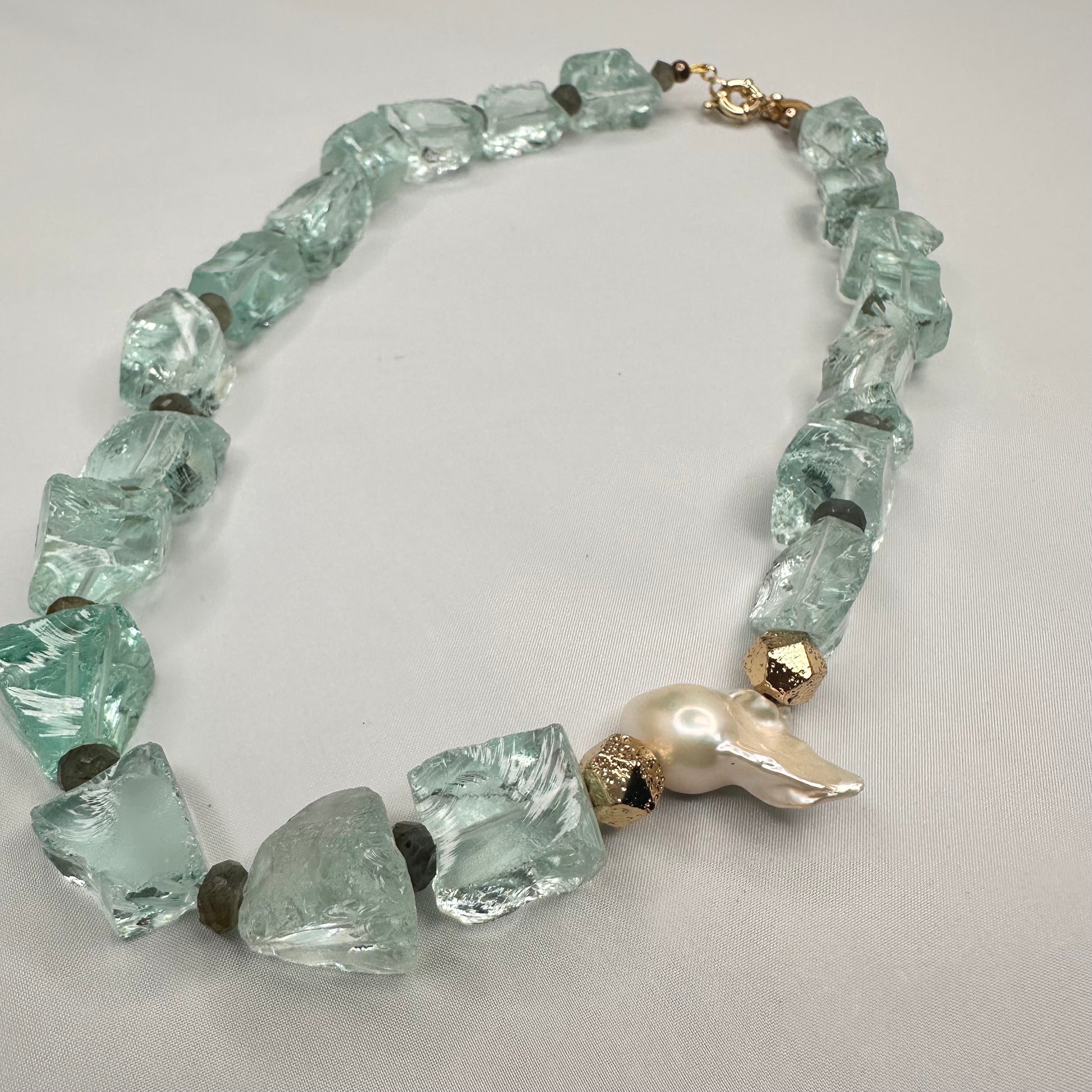 Aqua Quartz with Labradorite and Baroque Pearl Necklace | Erika Williner Designs