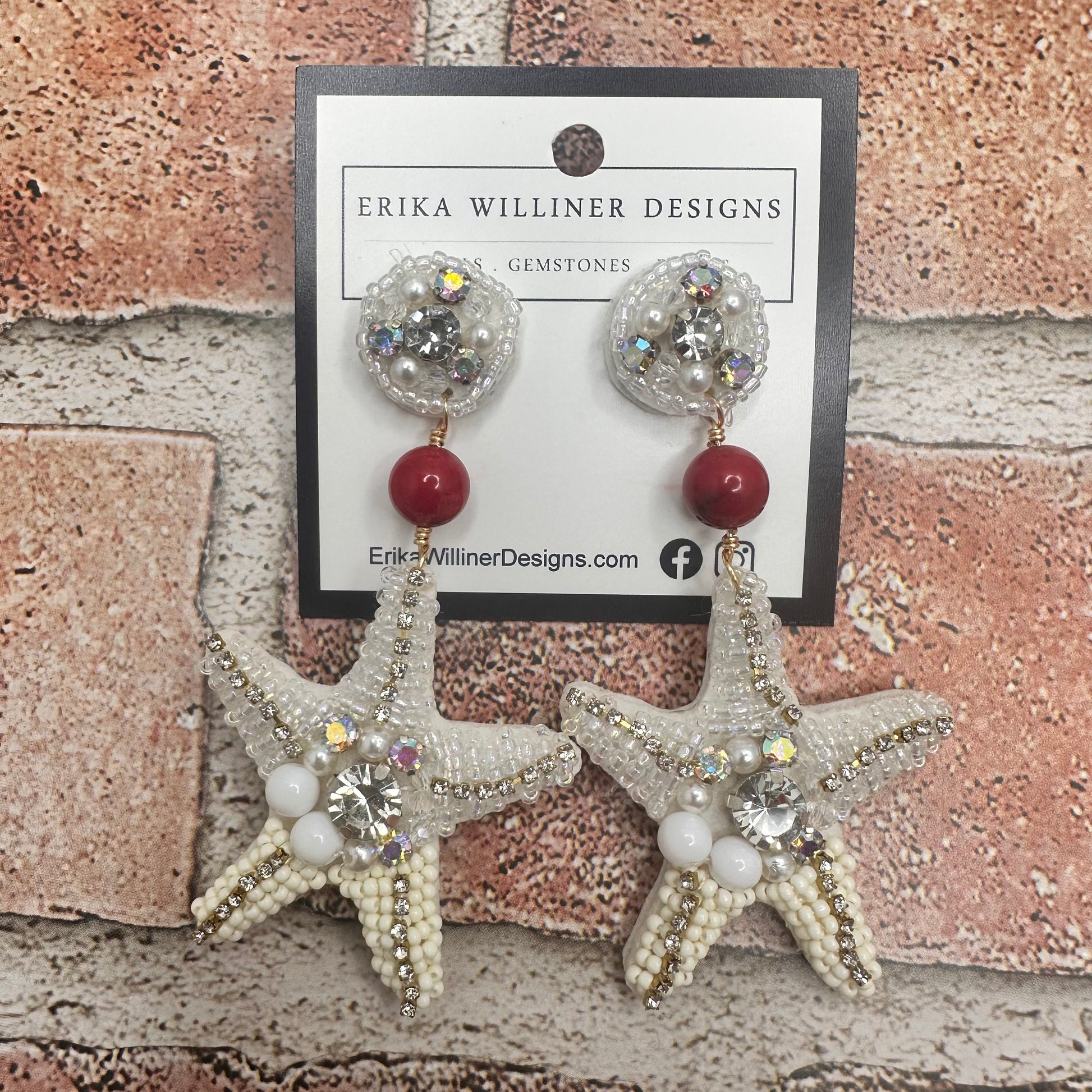 Elevate your look with these elegant Beaded Star Fish Earrings from Erika Williner Designs. Meticulously crafted, their delicate beadwork captures the graceful form of starfish, offering a refined touch of nature-inspired sophistication. Perfect for adding subtle charm to both casual and formal ensembles, these earrings provide a timeless accent that complements your unique style.
