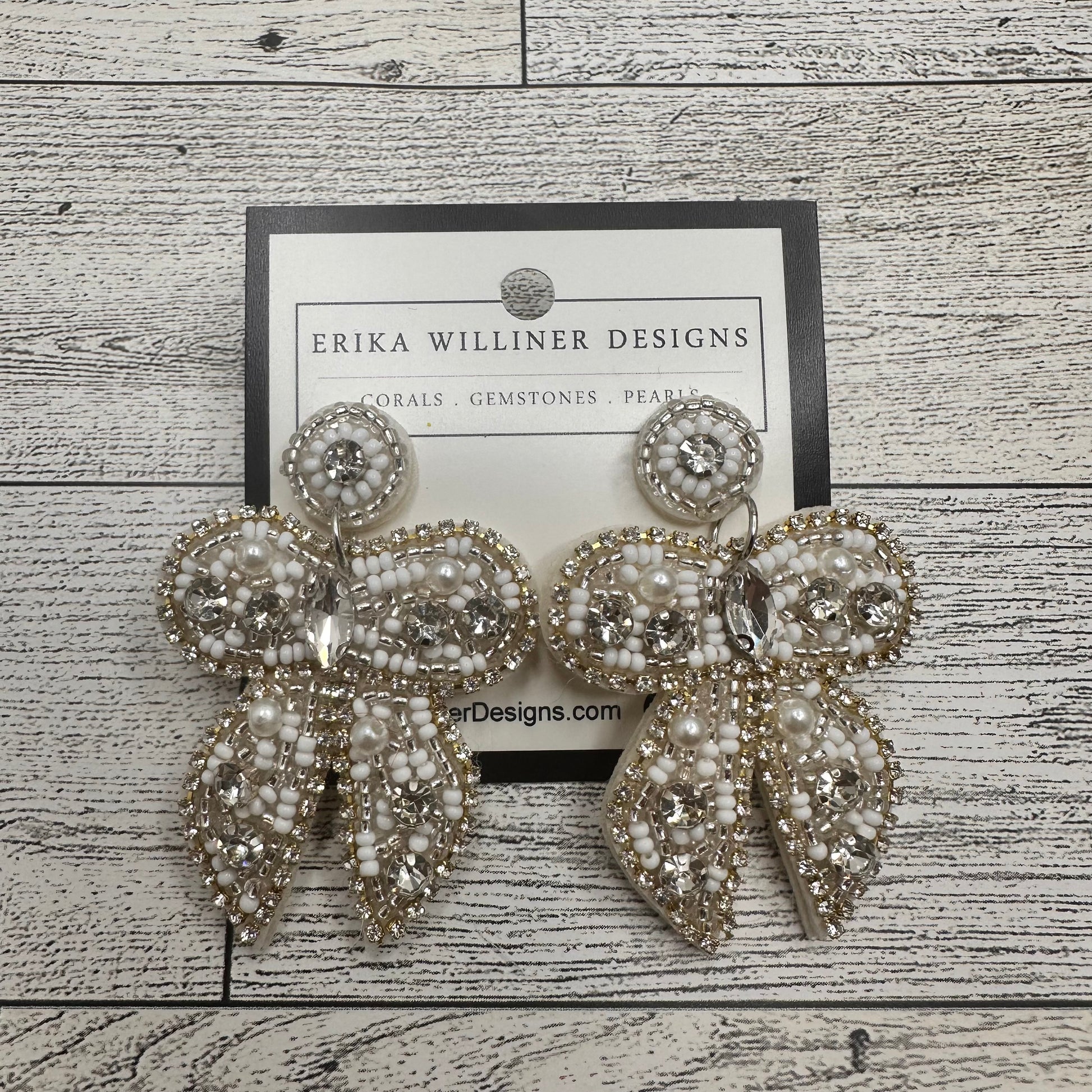 Elevate your style with these elegant Beaded White Bows from Erika Williner Designs. Meticulously crafted with delicate beads, these bows add a refined touch to any outfit, perfect for special occasions or to enhance everyday looks with subtle sophistication. Their timeless white hue complements a variety of styles, making them a versatile accessory that embodies grace and charm.