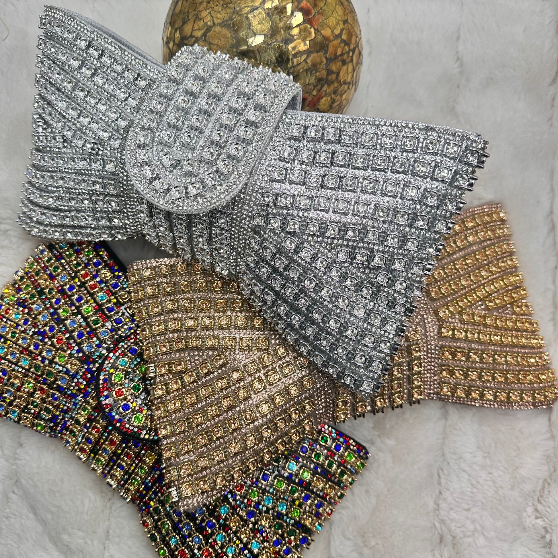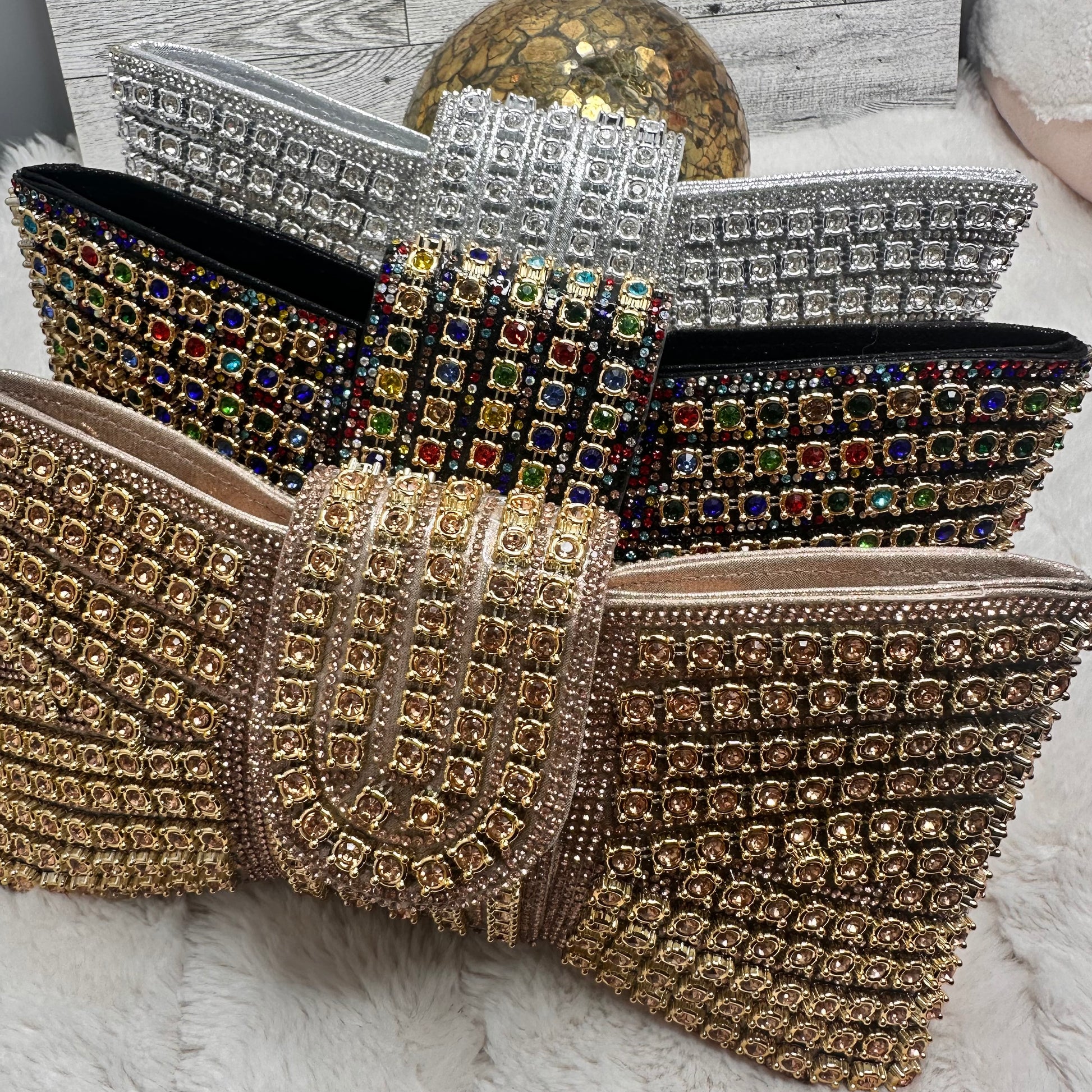 Elevate your evening look with this stunning bow sparkly clutch, a refined accessory that seamlessly transitions from cocktail events to formal occasions. Crafted with meticulous attention to detail, the shimmering embellishments catch light beautifully, while the signature bow detail adds an elegant touch of femininity. The compact silhouette fits essentials effortlessly, making it the perfect companion for any sophisticated outing. A timeless piece that brings understated glamour to your ensemble.