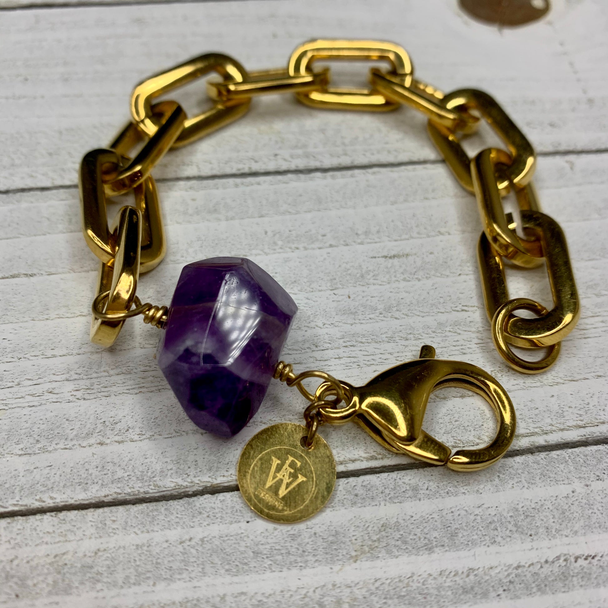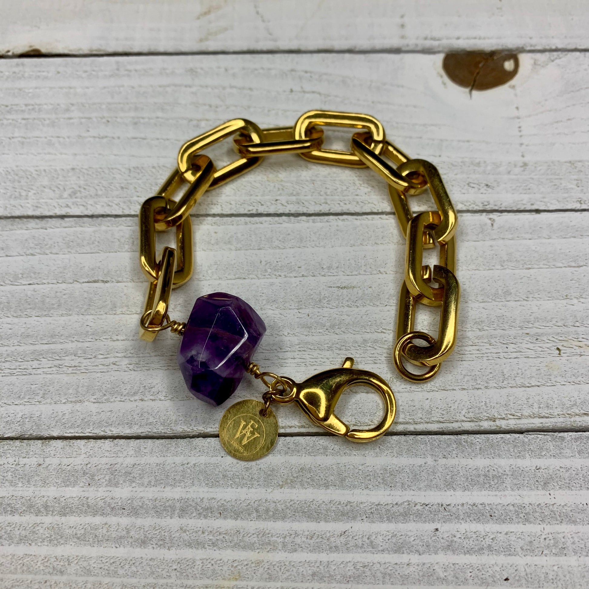 This Erika Williner Design is stunning, with a gold plated chain link bracelet that features a nugget faceted amethyst.