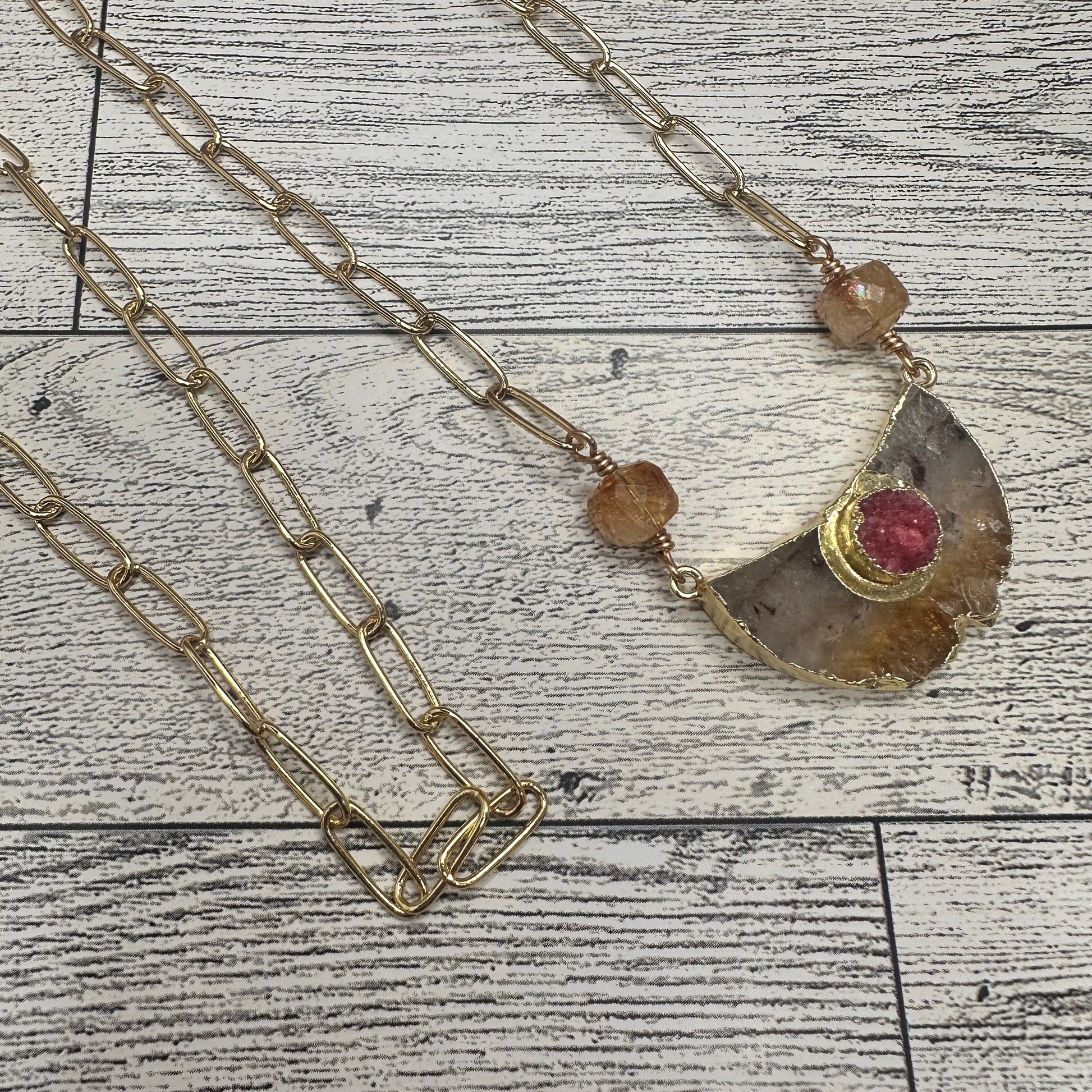 Citrini Pendant with Citrine beads and Long Paper Clip Chain Link Necklace | Erika Williner Designs