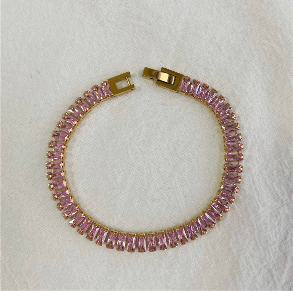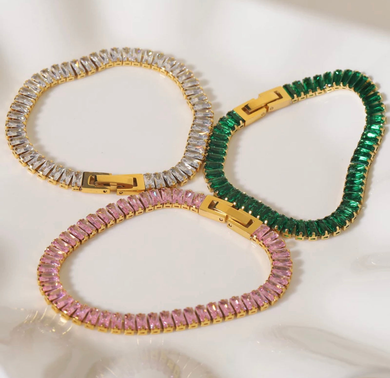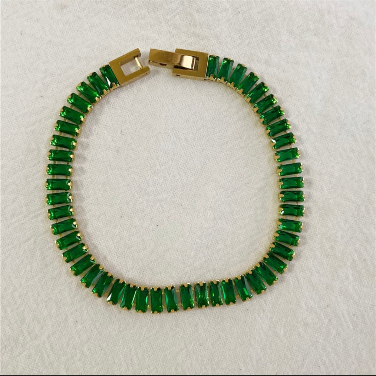 "Add some sparkle to your outfit with this Baguette crystals bracelet from Erika Williner Designs. The perfect accessory for any occasion, this bracelet features dazzling baguette crystals that will catch everyone's eye. Elevate your style and let your playful side shine with this unique piece."