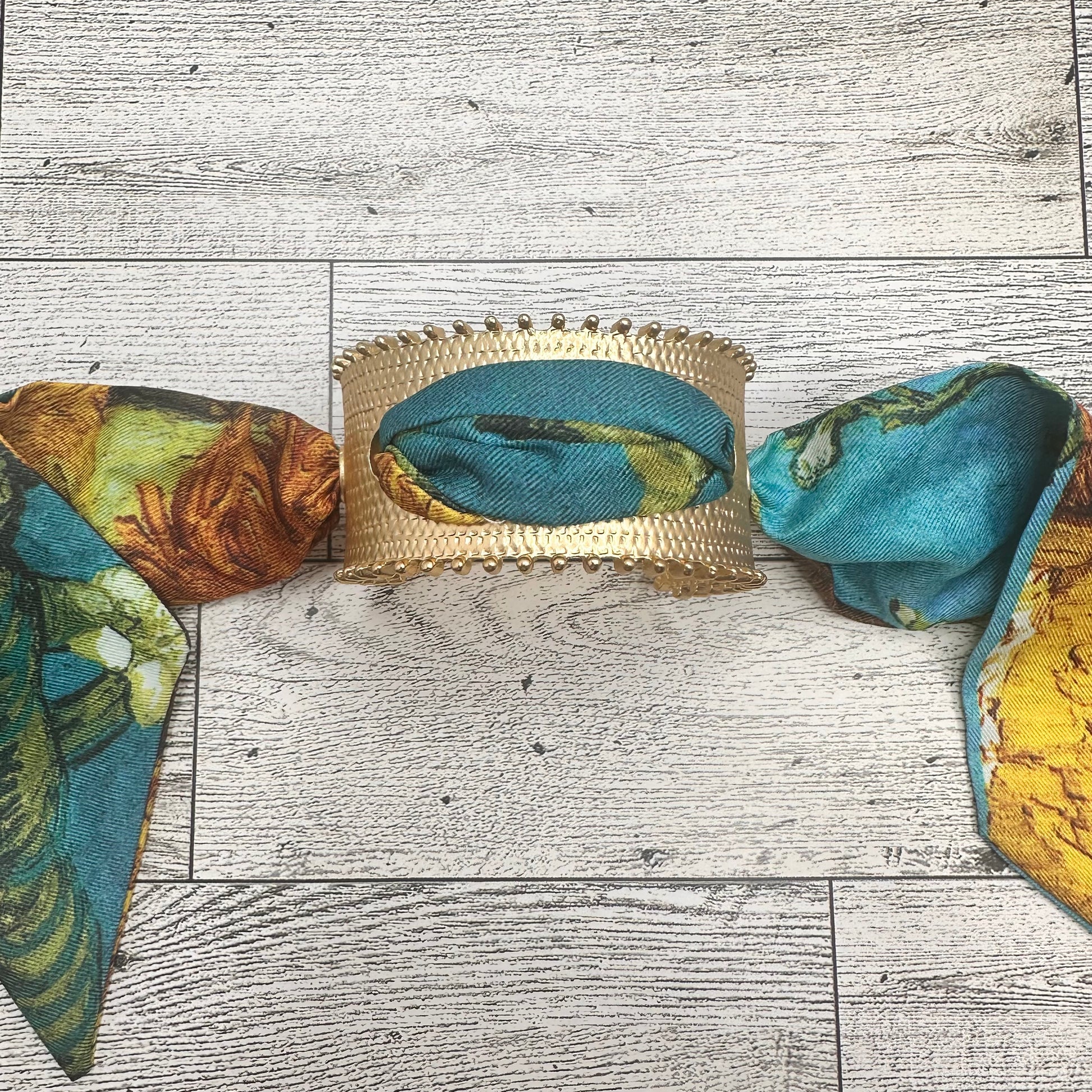 Elevate your everyday style with this stunning cuff bracelet featuring an integrated scarf detail. Crafted with meticulous attention to design, this piece seamlessly blends sophistication with versatility—wear it as a bold statement accessory or adjust the scarf element for a personalized look. Perfect for adding an artistic touch to any outfit, from casual to formal occasions. A signature piece from Erika Williner Designs that transforms how you accessorize.