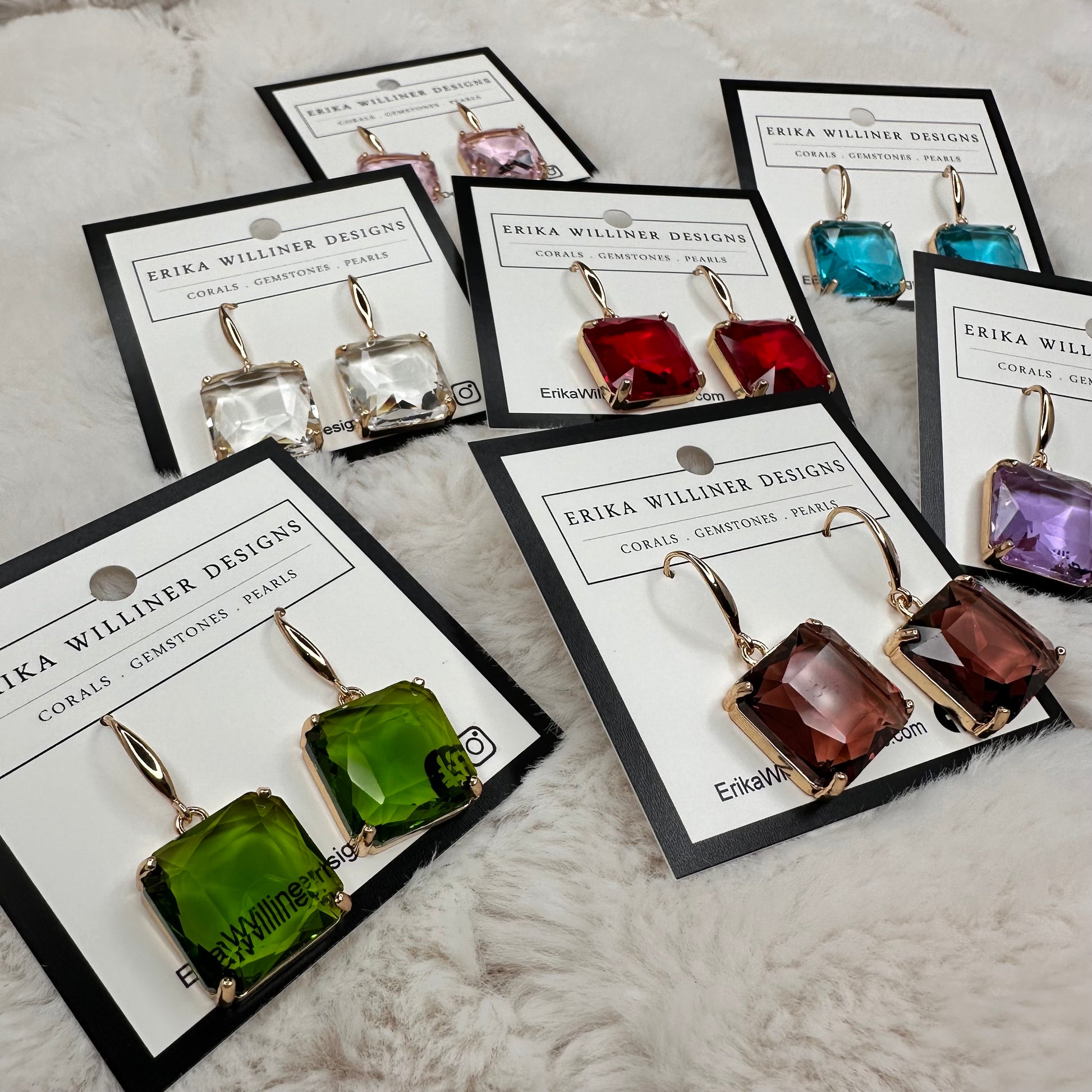 Cushion Crystal Pendant Earrings | Erika Williner Designs