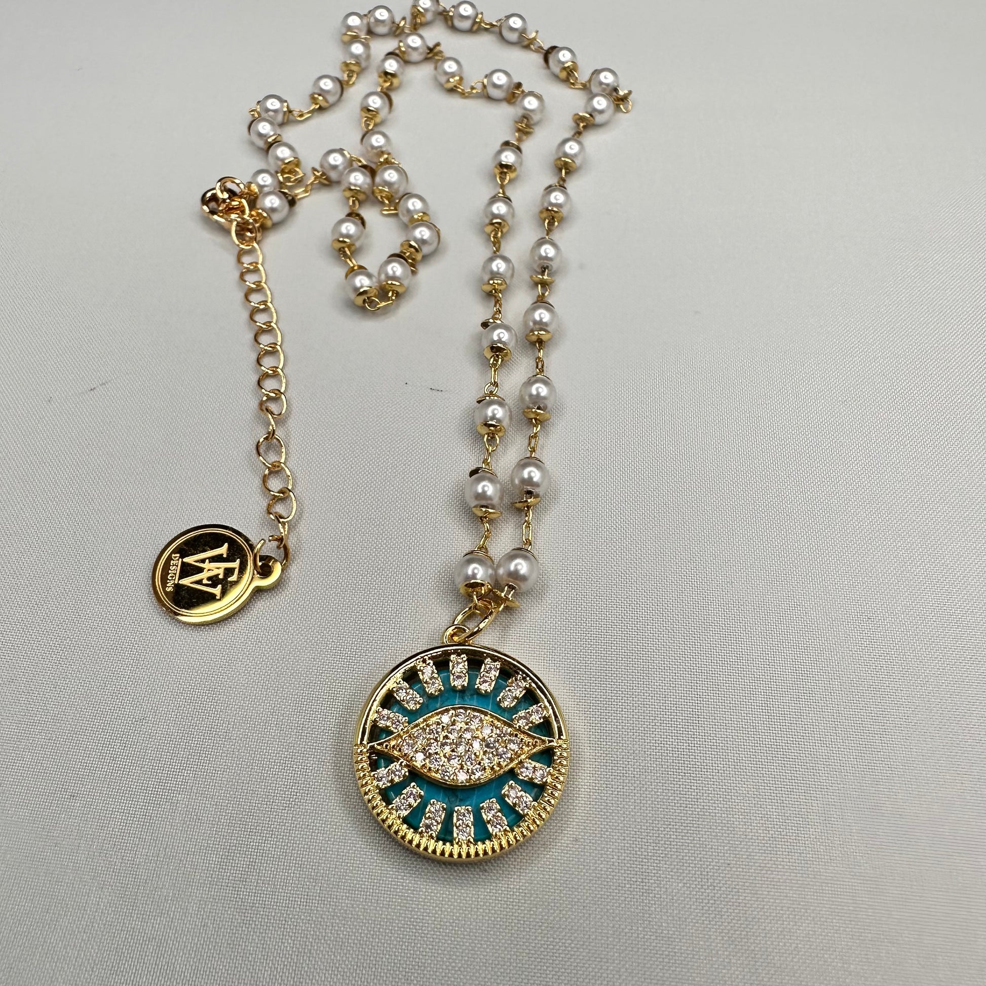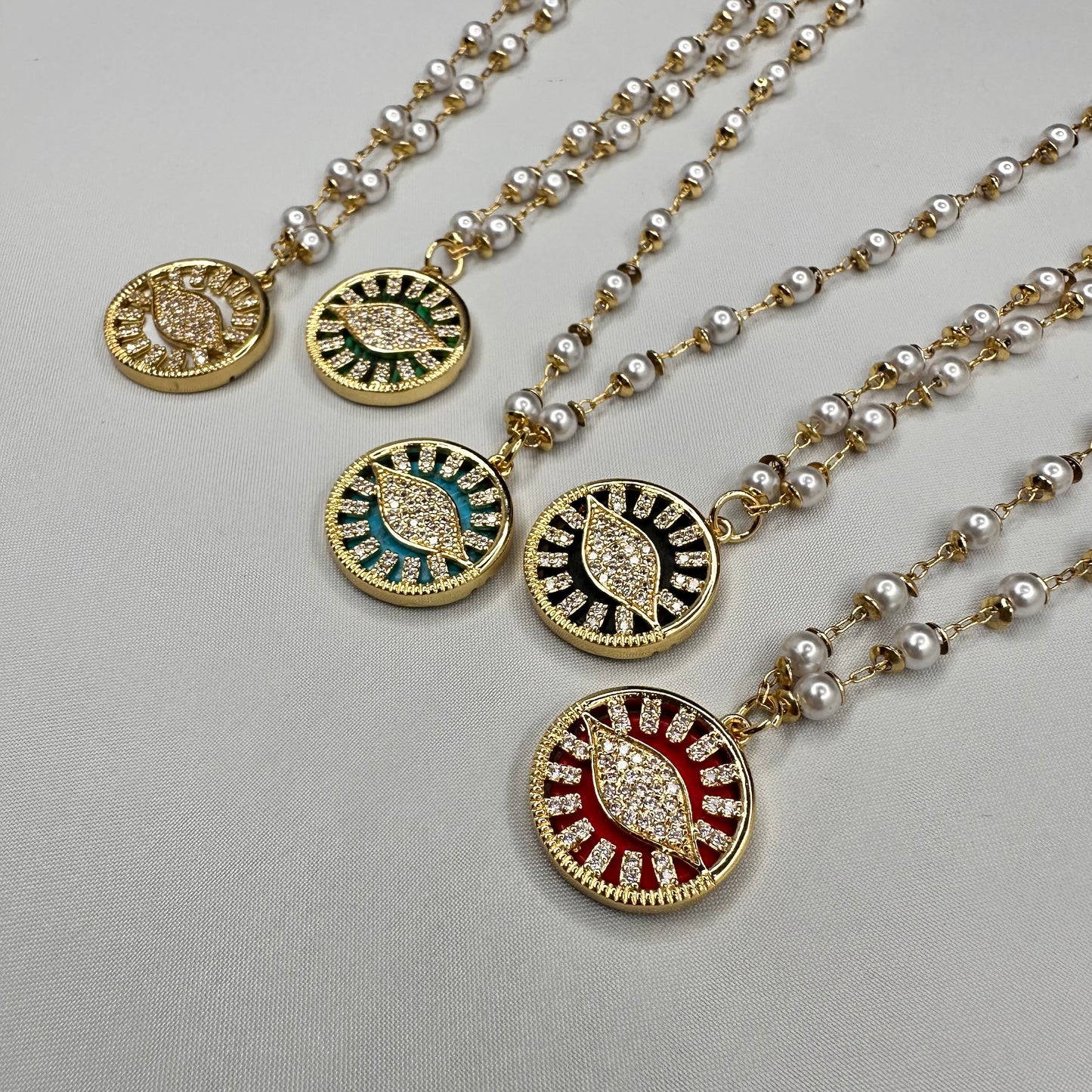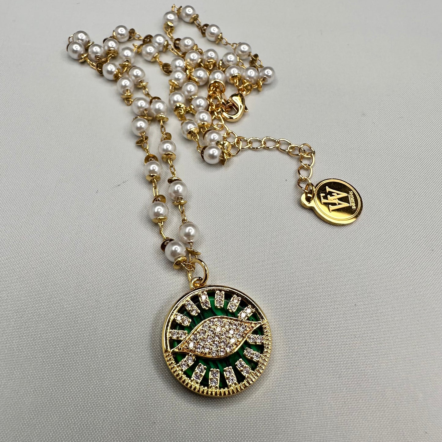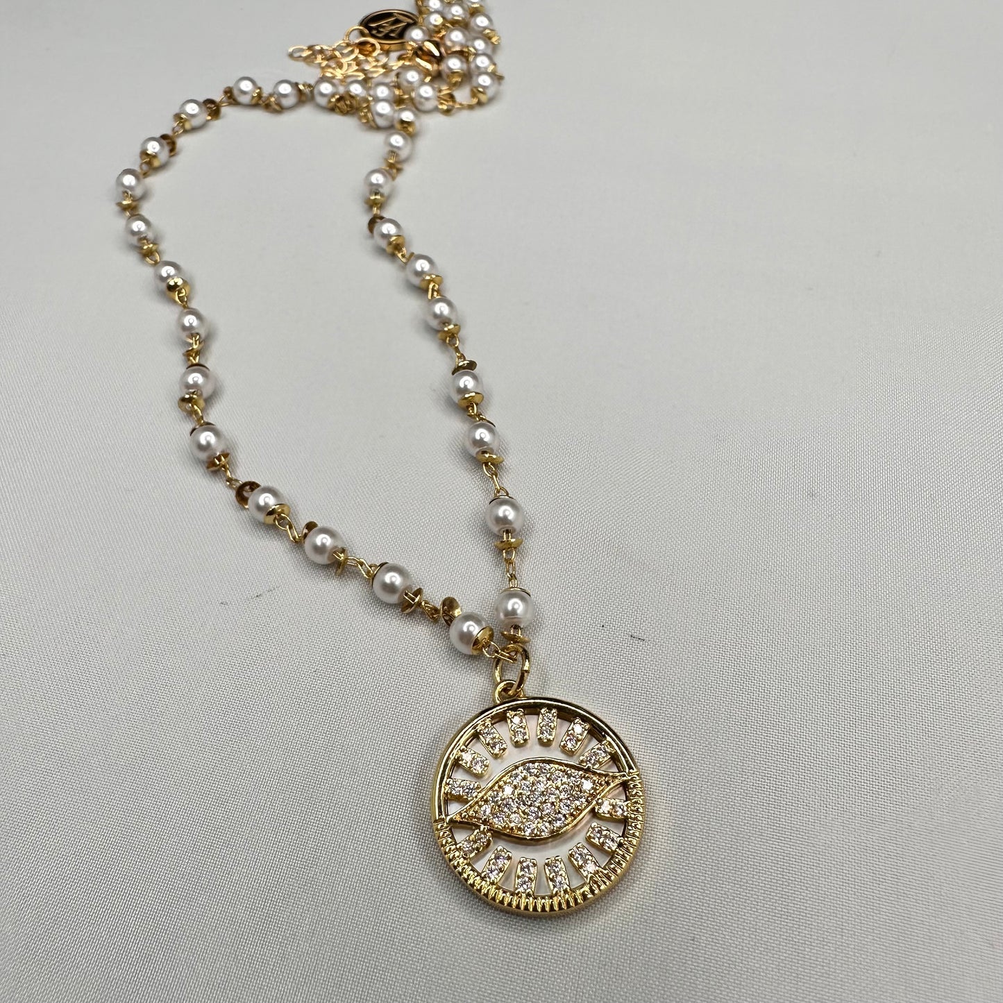 CZ Evil Eye Pendant in Faux Pearl Dainty Necklace | Erika Williner Designs