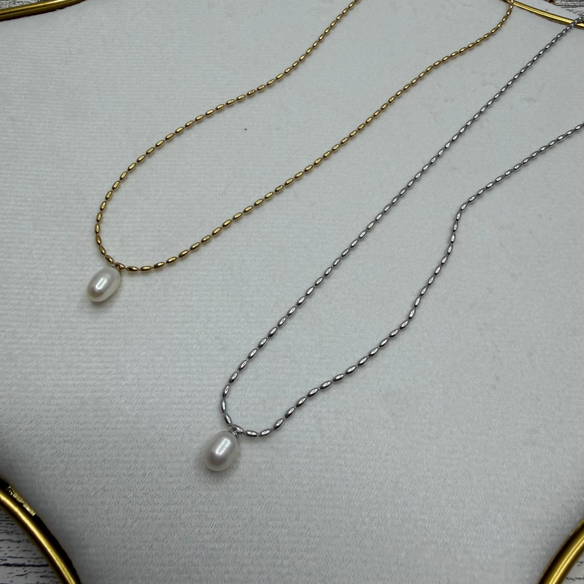 Elevate your everyday elegance with this delicate freshwater pearl necklace. Each lustrous pearl is hand-selected for its natural beauty and subtle iridescence, creating a timeless piece that complements any style. The dainty design sits gracefully at the neckline, offering versatile sophistication for both casual days and special occasions. Whether worn alone for understated charm or layered with other pieces, this necklace becomes a cherished staple in your jewelry collection. A gentle reminder that true beauty lies in simplicity and authenticity.