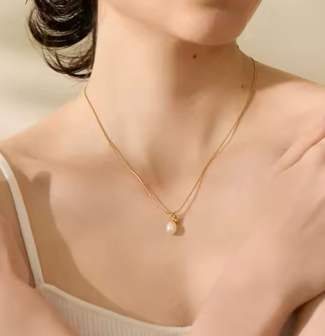 Customer Dainty Fresh Water Pearl Pendant in Rat Tail Necklace | Erika Williner Designs