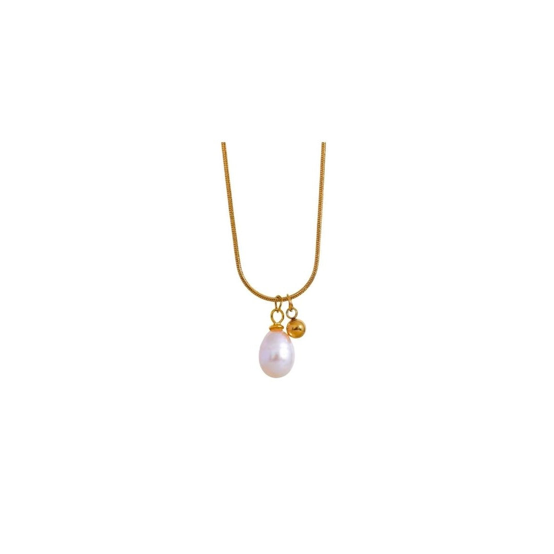 Add a touch of timeless elegance to your look with this Dainty Fresh Water Pearl Pendant from Erika Williner Designs. Delicately crafted and effortlessly chic, this necklace is sure to elevate any outfit you pair it with. The perfect addition to your collection of artisan jewelry, this pendant is a stunning representation of sophistication and luxury. Made out of stainless steel plated with 18k gold plating.
