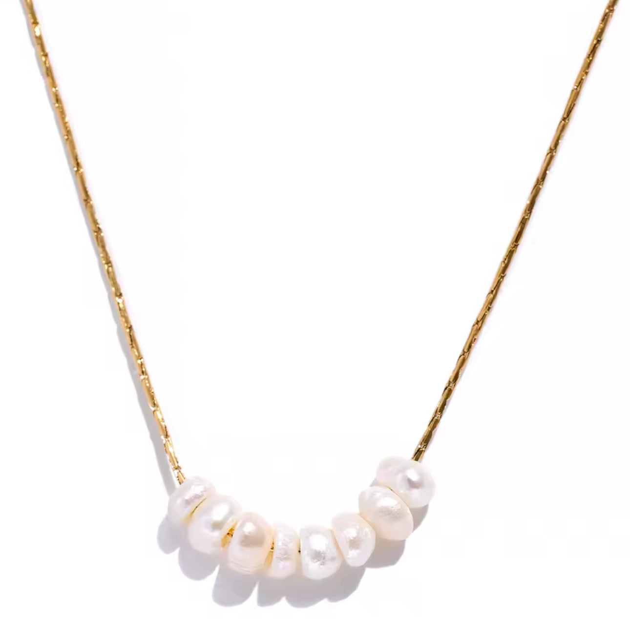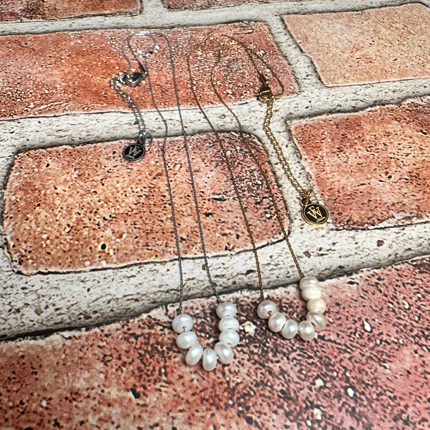 Timeless elegance meets modern chic with our Dainty Necklace. The delicate design and lustrous fresh water pearls create a statement piece that will elevate any outfit. Channel your inner grace and sophistication with this exclusive creation from Erika Williner Designs. Feel the alluring weight of each pearl as they daintily drape around your neck, adding a touch of luxury to your wardrobe. Elevate your style with our Dainty Necklace, a true masterpiece that will never go out of style.