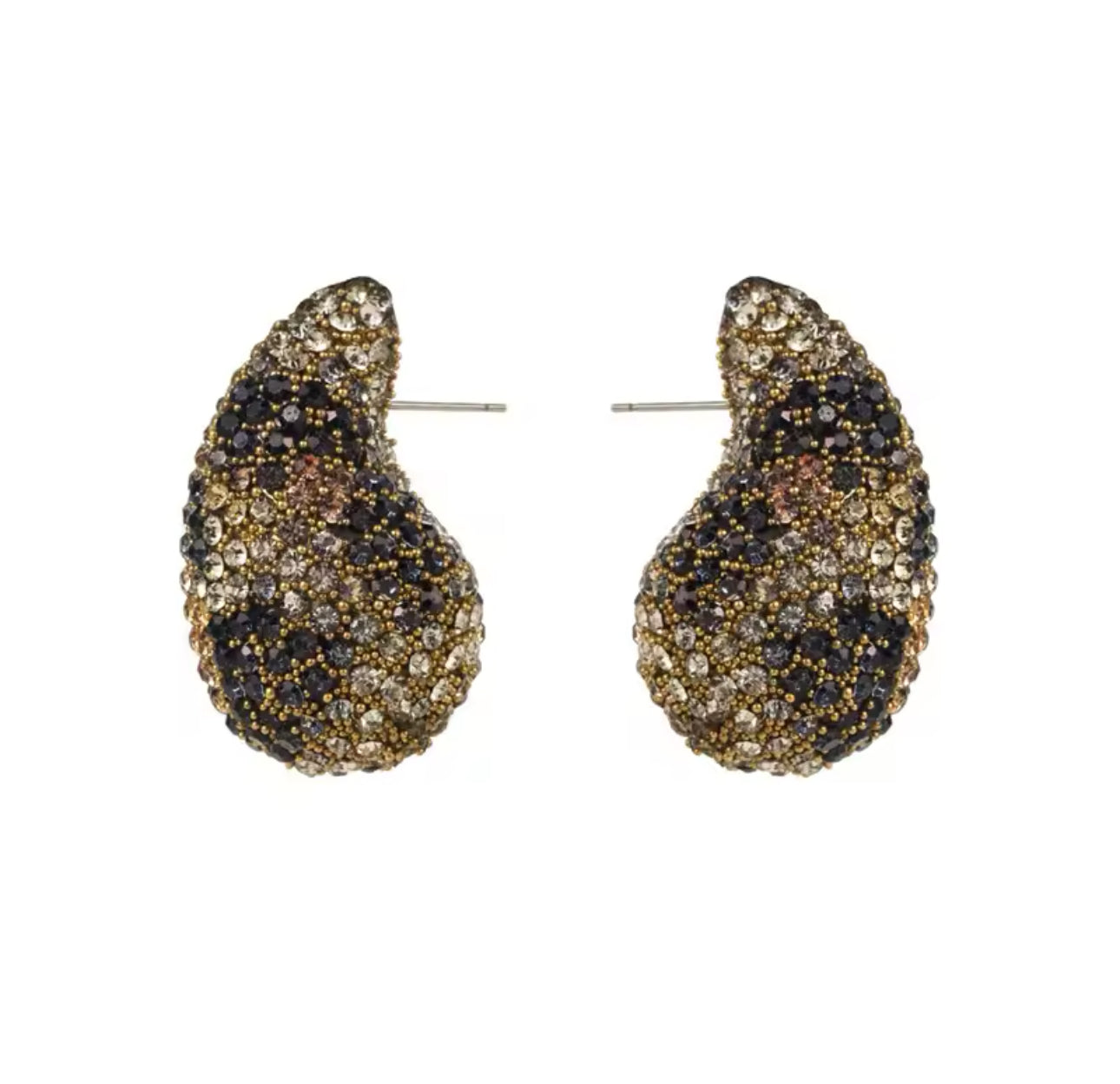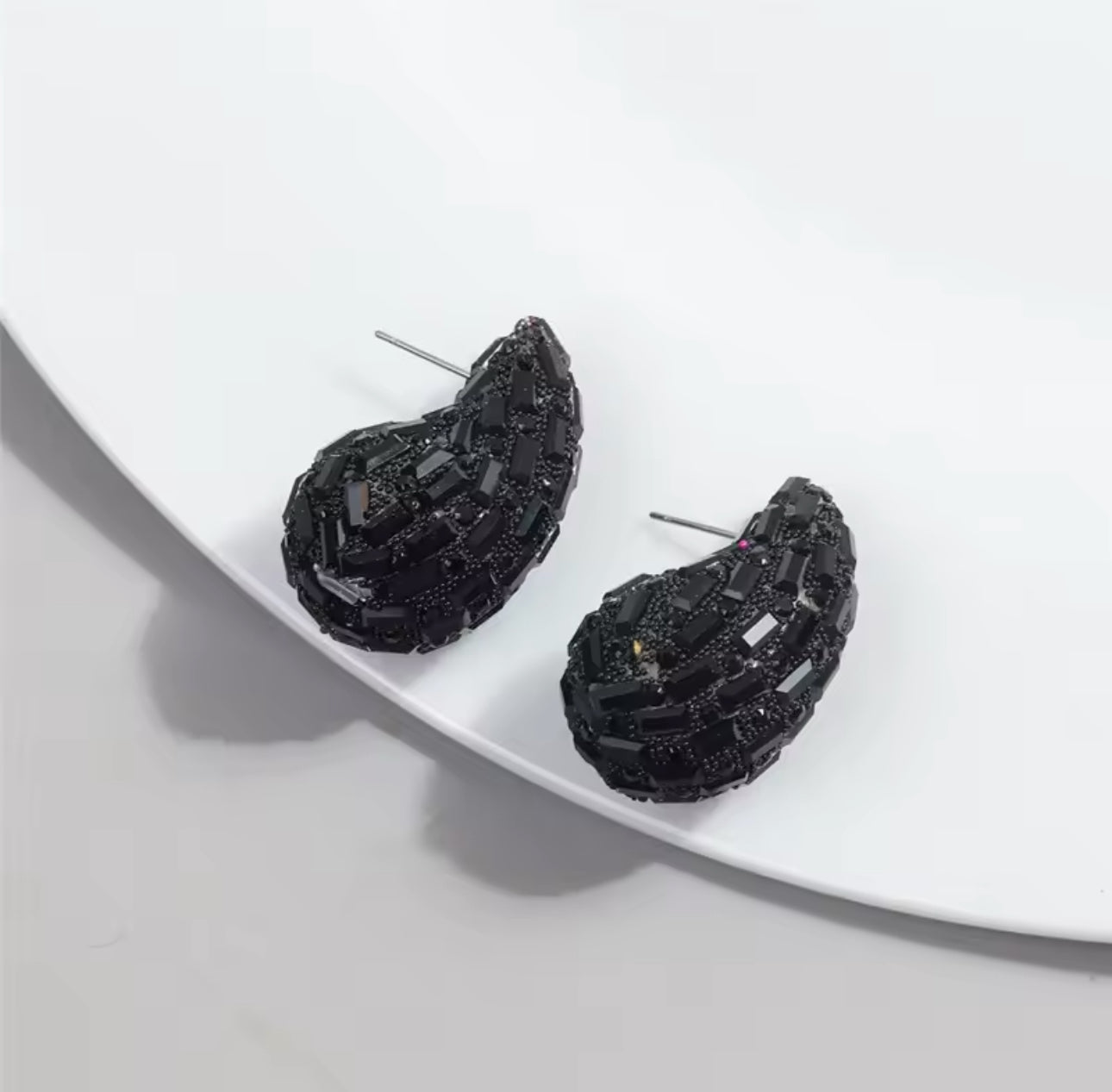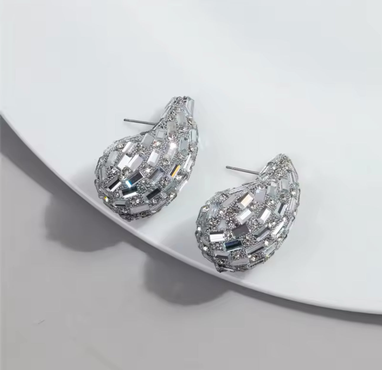 The B earrings are a stylish variation of the Botega earrings. Teardrop earrings embellished with pave bling. Very light.