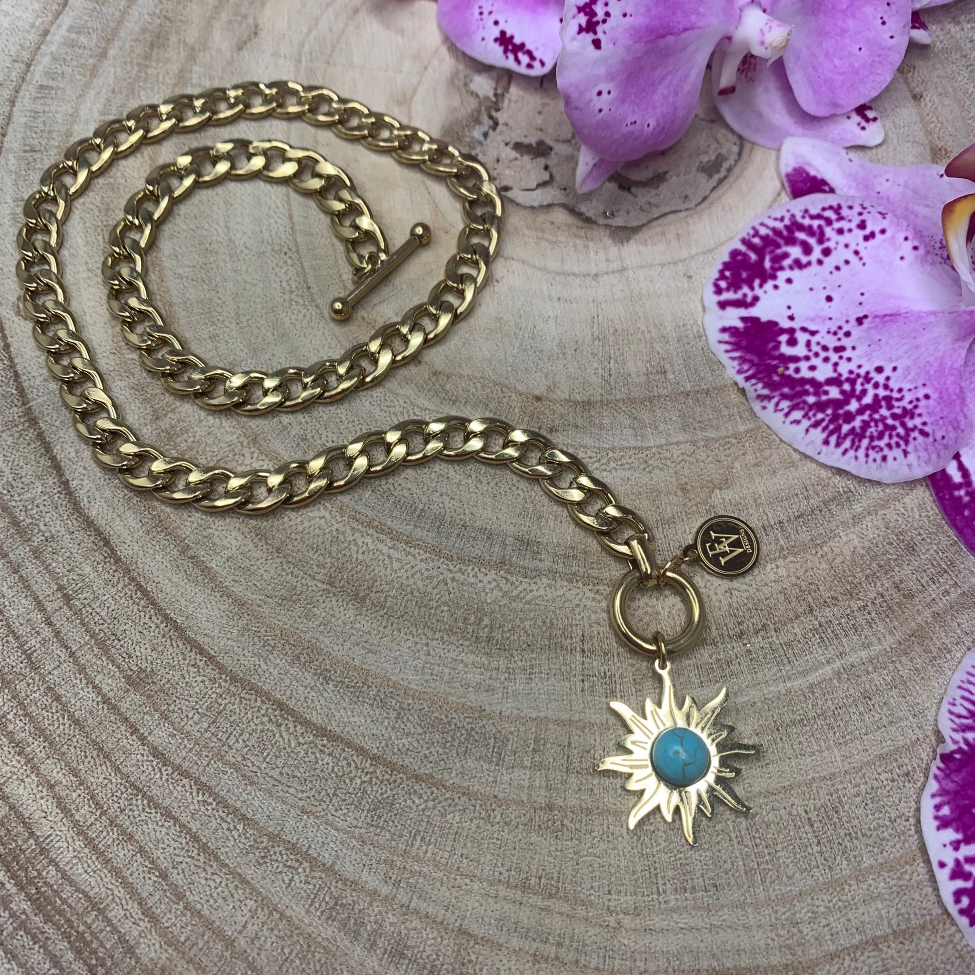 Stainless Chain Linxs with a Sun Shape Pendant 300-23 | Erika Williner Designs