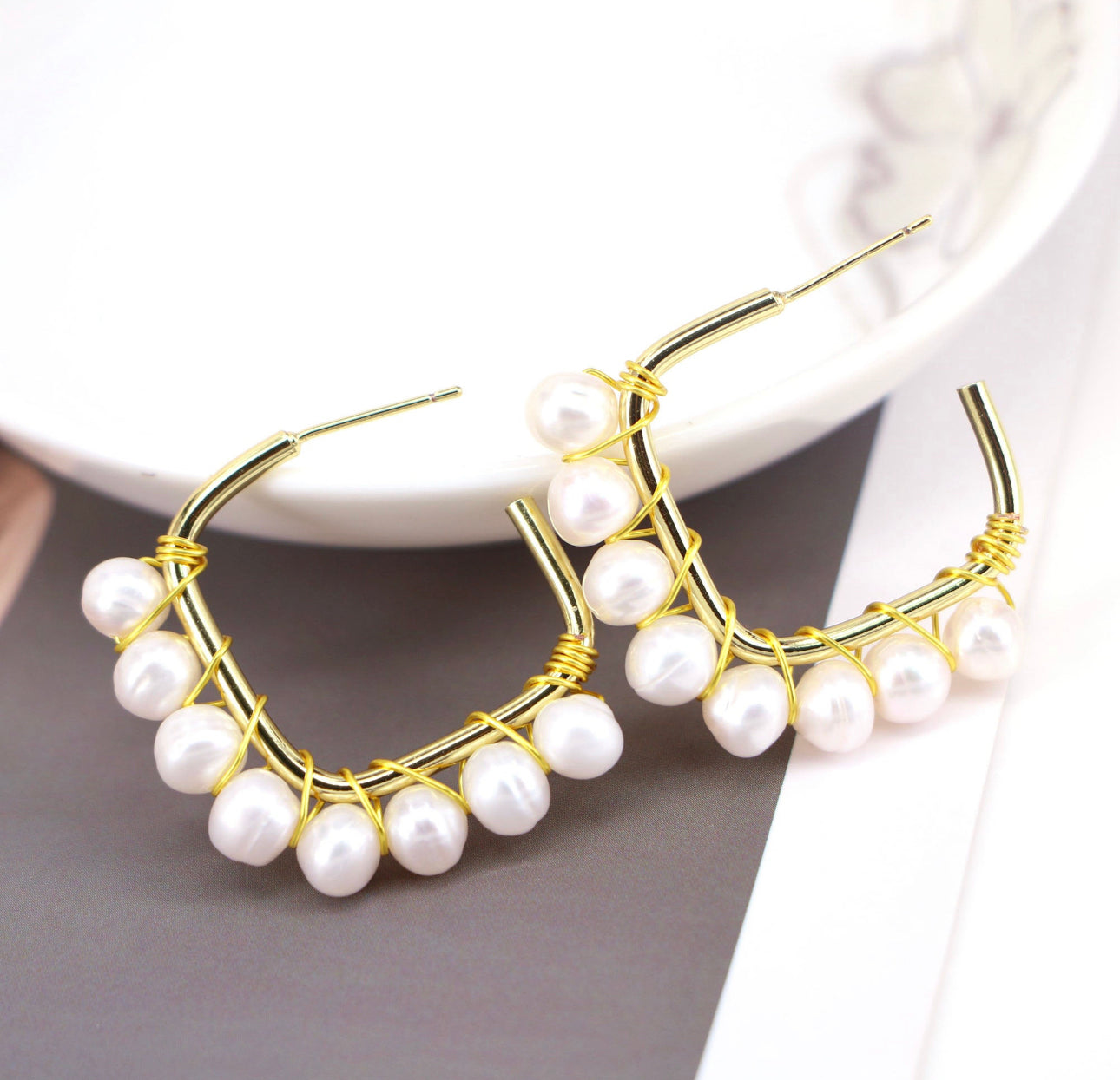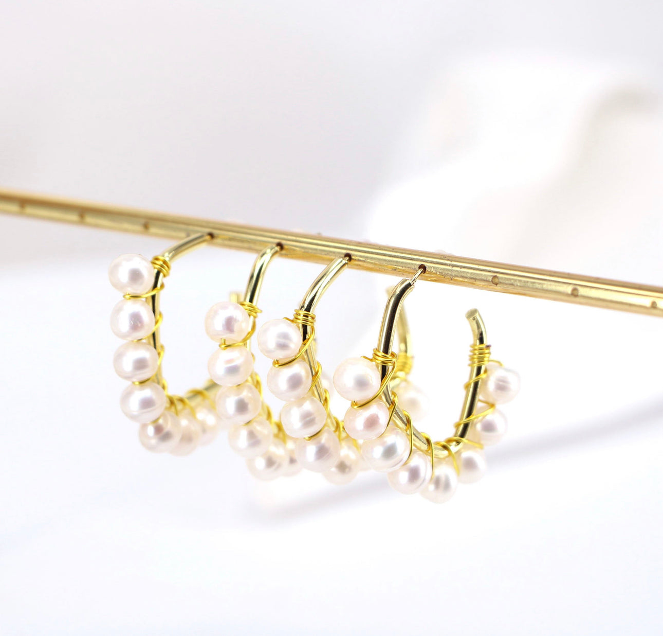 Fresh Water Pearls and Gold Plated Brass Earrings 220-41 | Erika Williner Designs