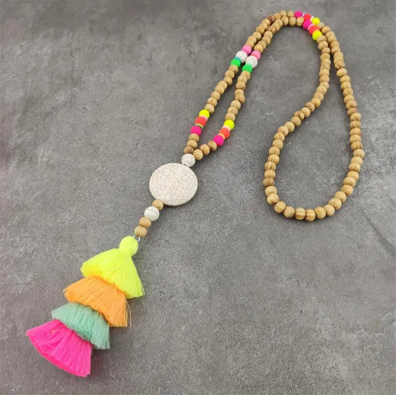 Wooden Beads with Heart/Circle Magnesite and Cotton Tassel | Erika Williner Designs