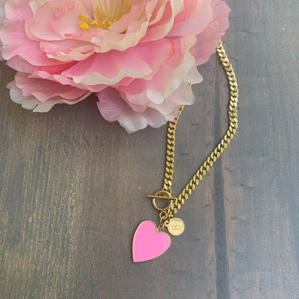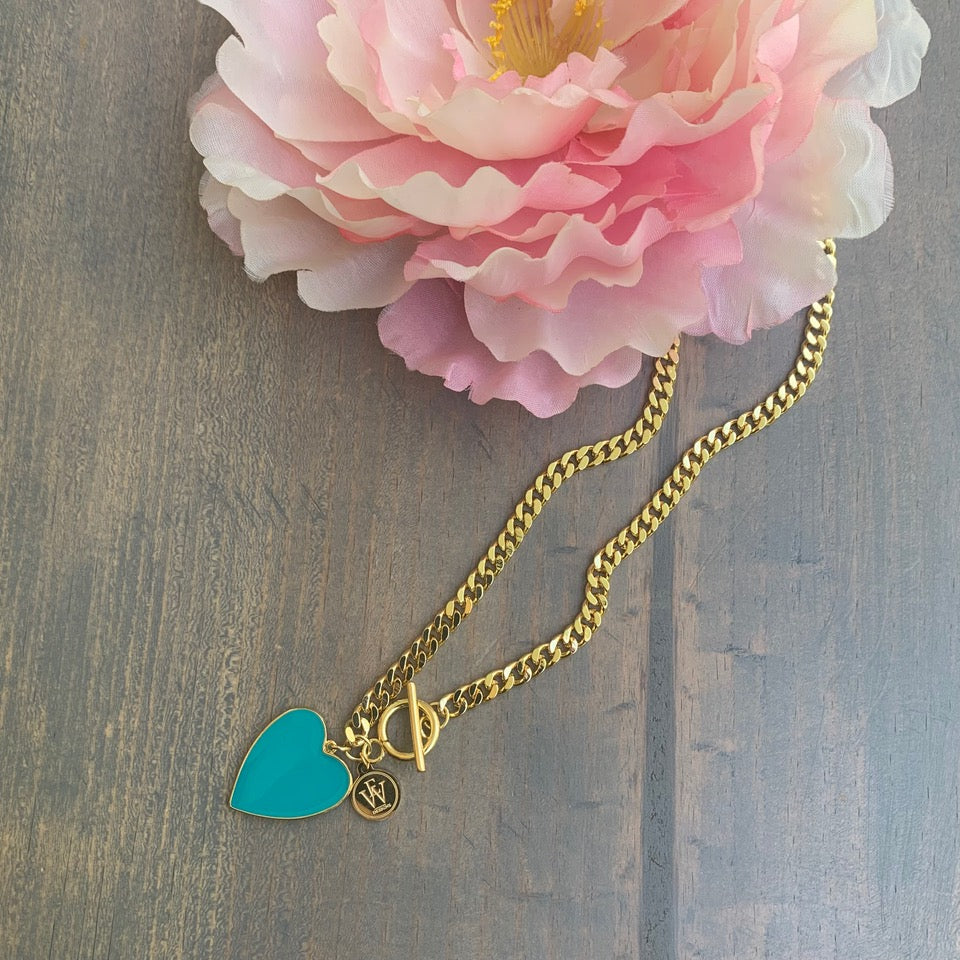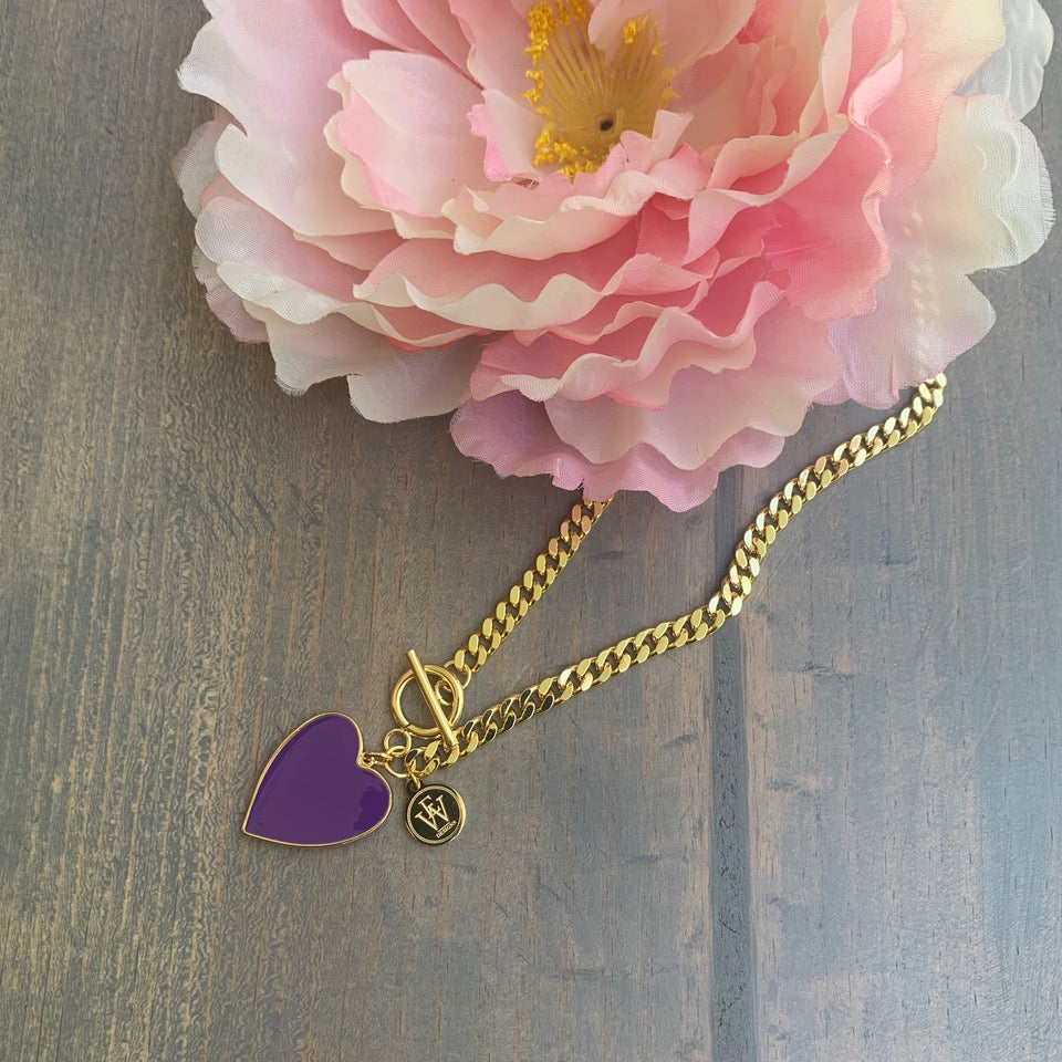 Gold Plated Necklace with Enamel Heart Pendant 300-3 | Erika Williner Designs