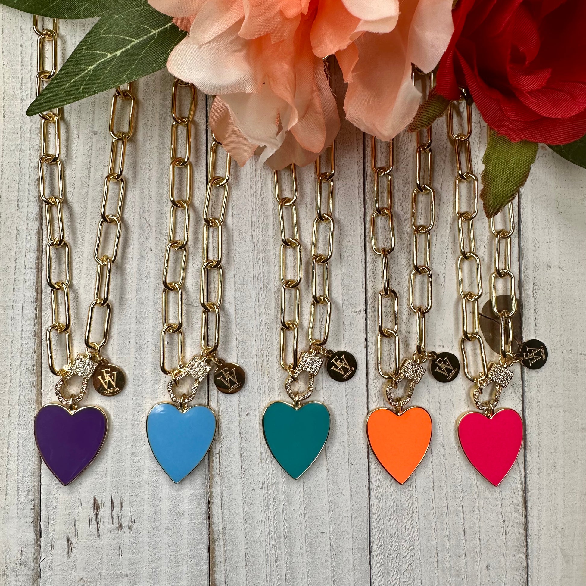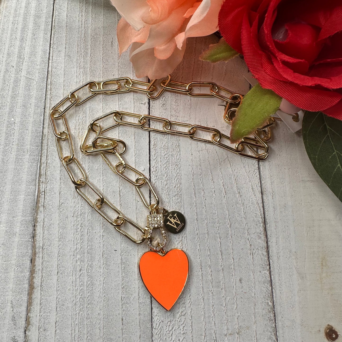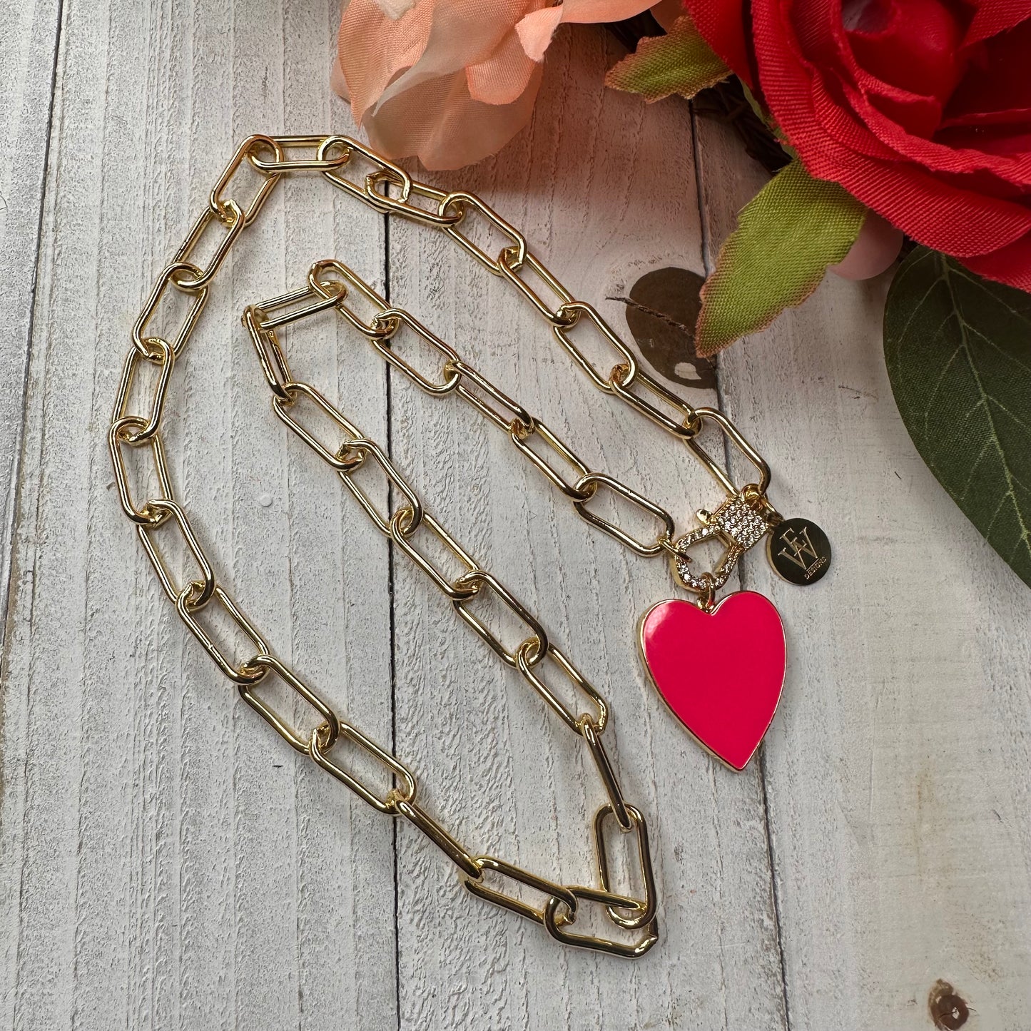 Transform your style with endless versatility! Wear this trendy paper clip chain necklace all year round - swap out the enameled heart pendant or wear the chain link on its own. Embrace change and make a statement with every accessory!