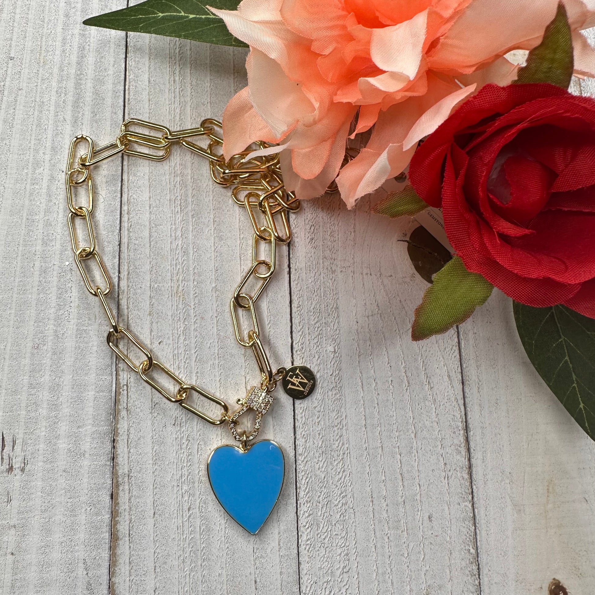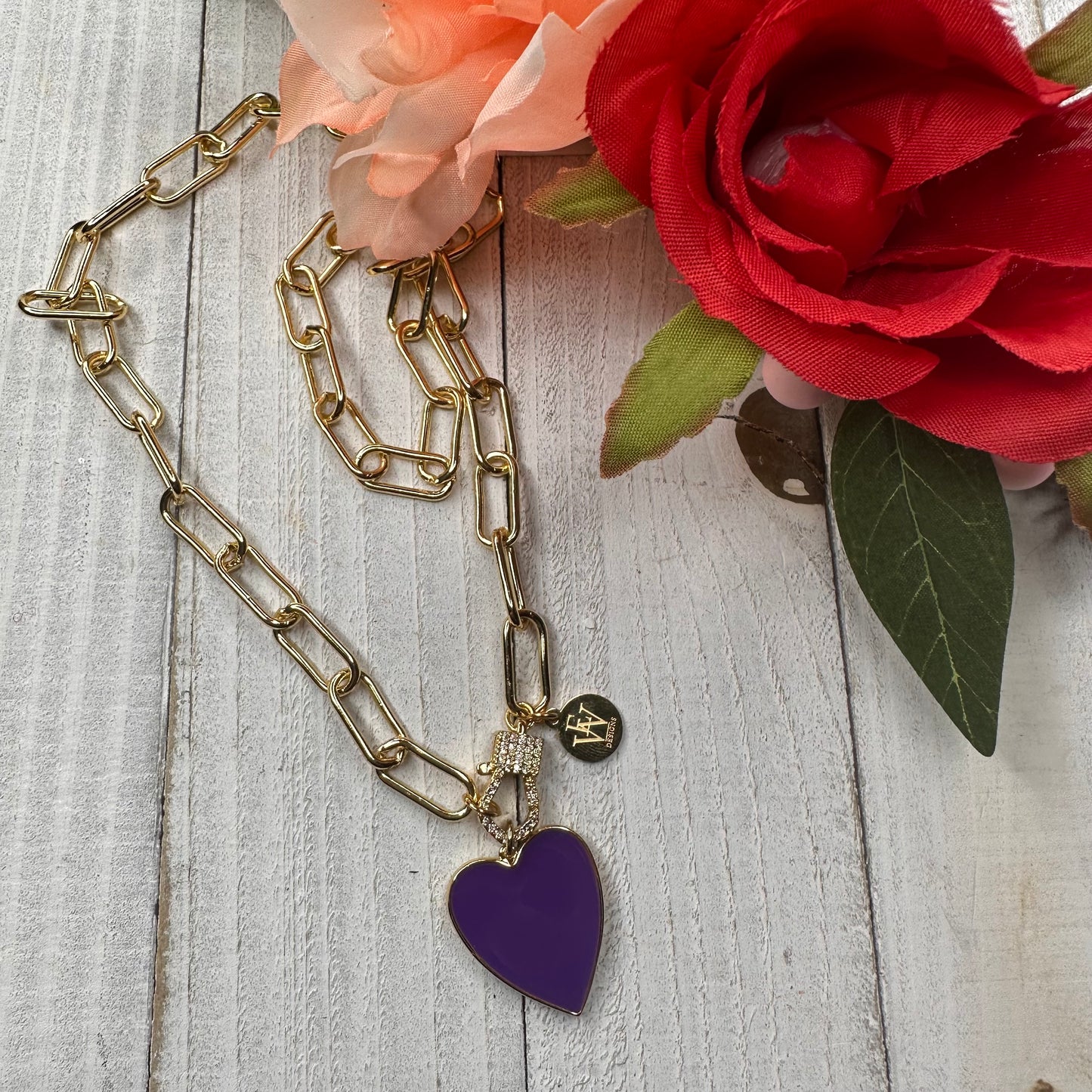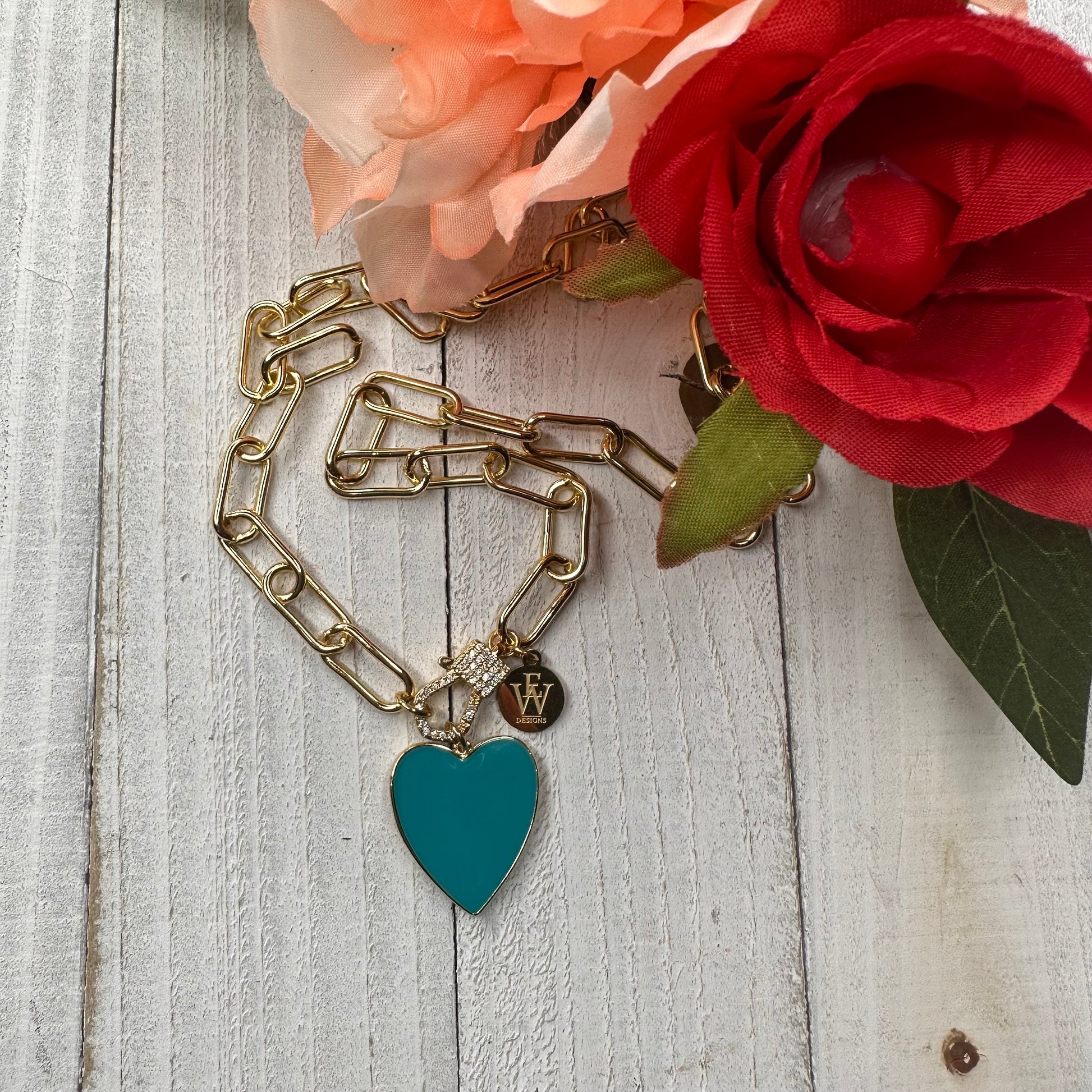 Transform your style with endless versatility! Wear this trendy paper clip chain necklace all year round - swap out the enameled heart pendant or wear the chain link on its own. Embrace change and make a statement with every accessory!