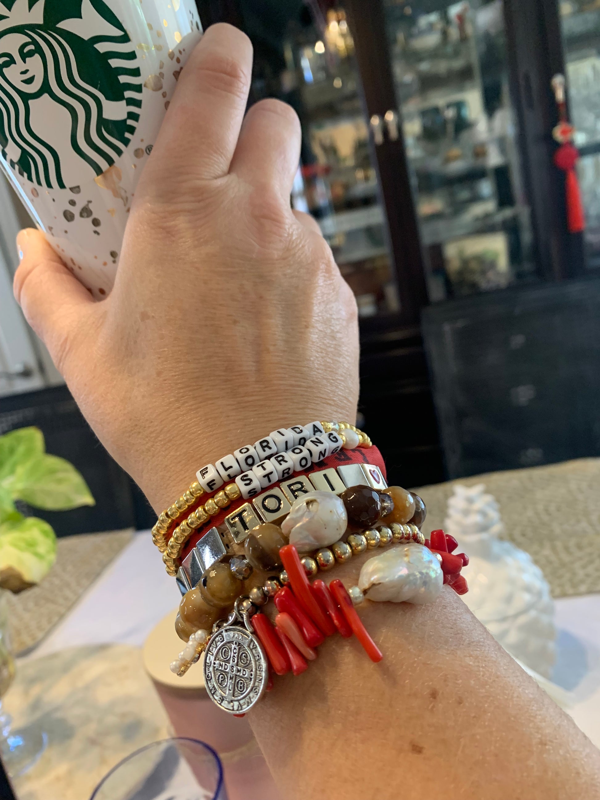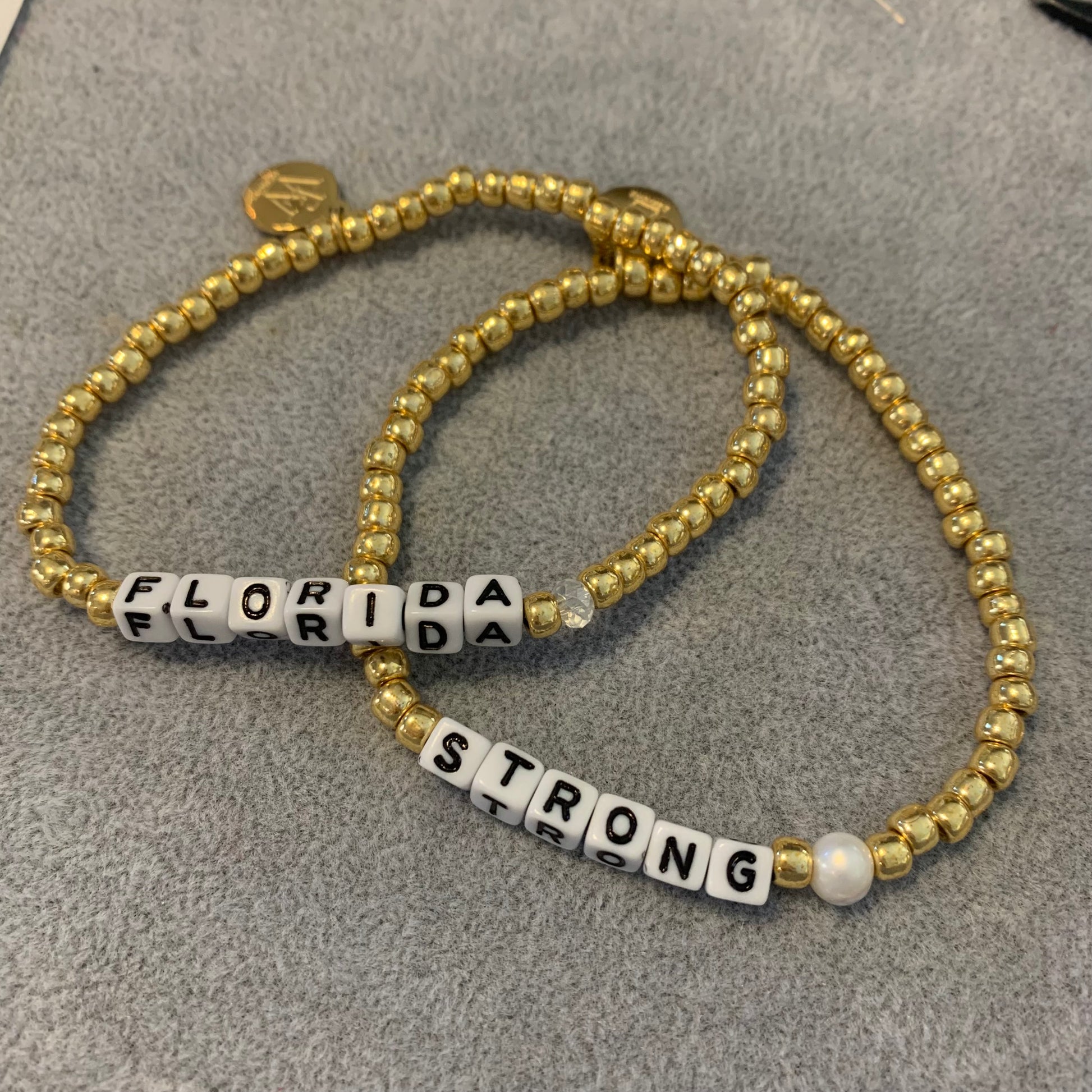 Introducing the Florida Strong Words Collection Stretchy Stack from Erika Williner Designs! This Florida Strong Stack includes 2 bracelets with a randomly chosen accent bead. Make a statement with stylish colors and gemstones (or let us know your preference in the order comments). Support Florida communities and add some flair to your wardrobe!