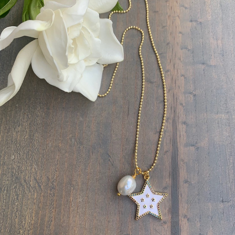 Gold Plated Necklace with a Star Pendant a Fresh Water Pearl 350-09 | Erika Williner Designs