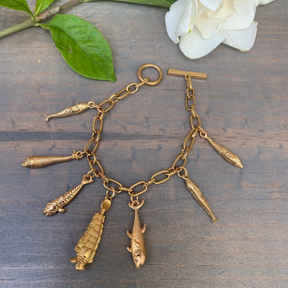 Gold Plated Bracelet with Diverse Fish Pendants 400-10 | Erika Williner Designs