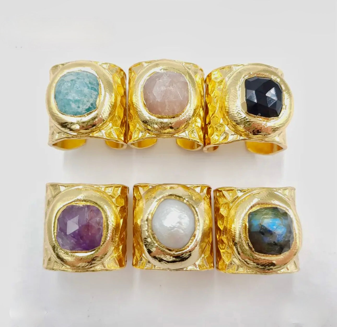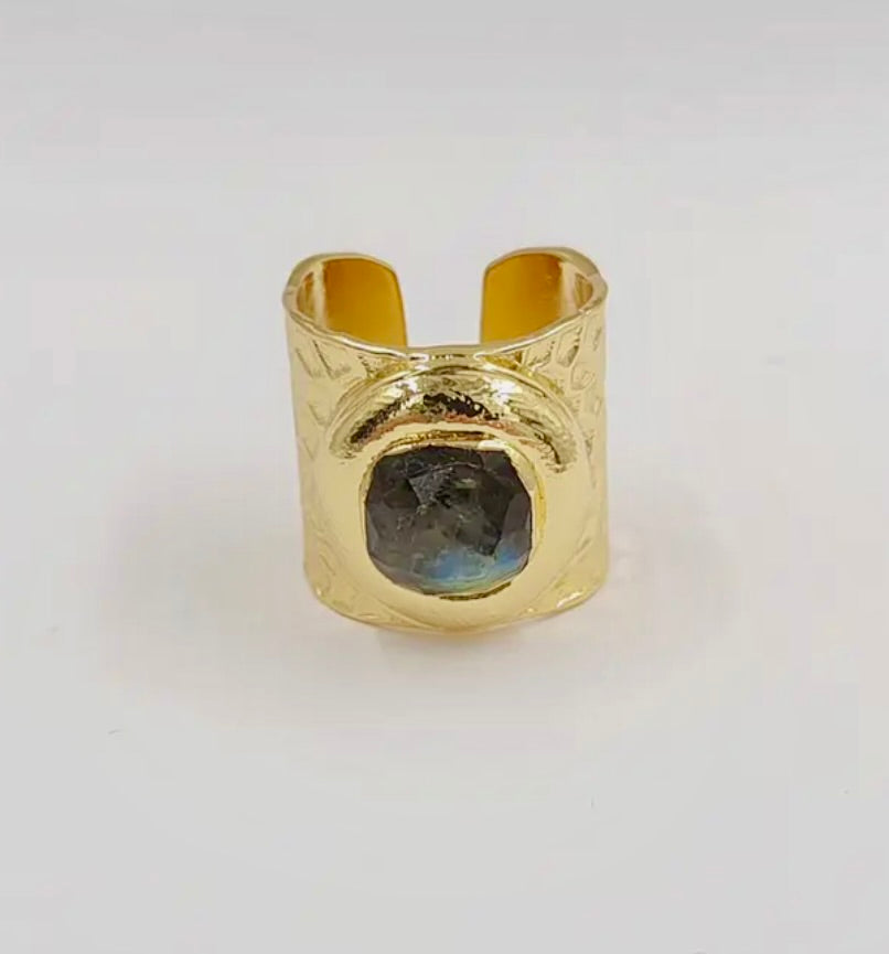 This ring is the perfect blend of fashion and function. The unique cuff design adds a touch of edginess to any outfit, while the faceted stone brings a pop of color and sparkle. It's the ultimate statement piece (and conversation starter) for any fashion-forward individual.