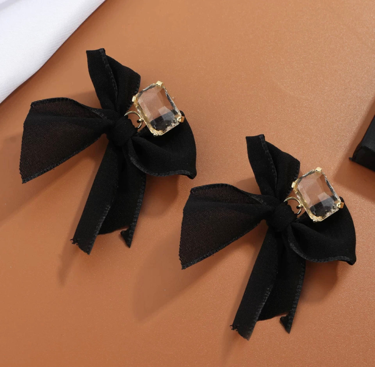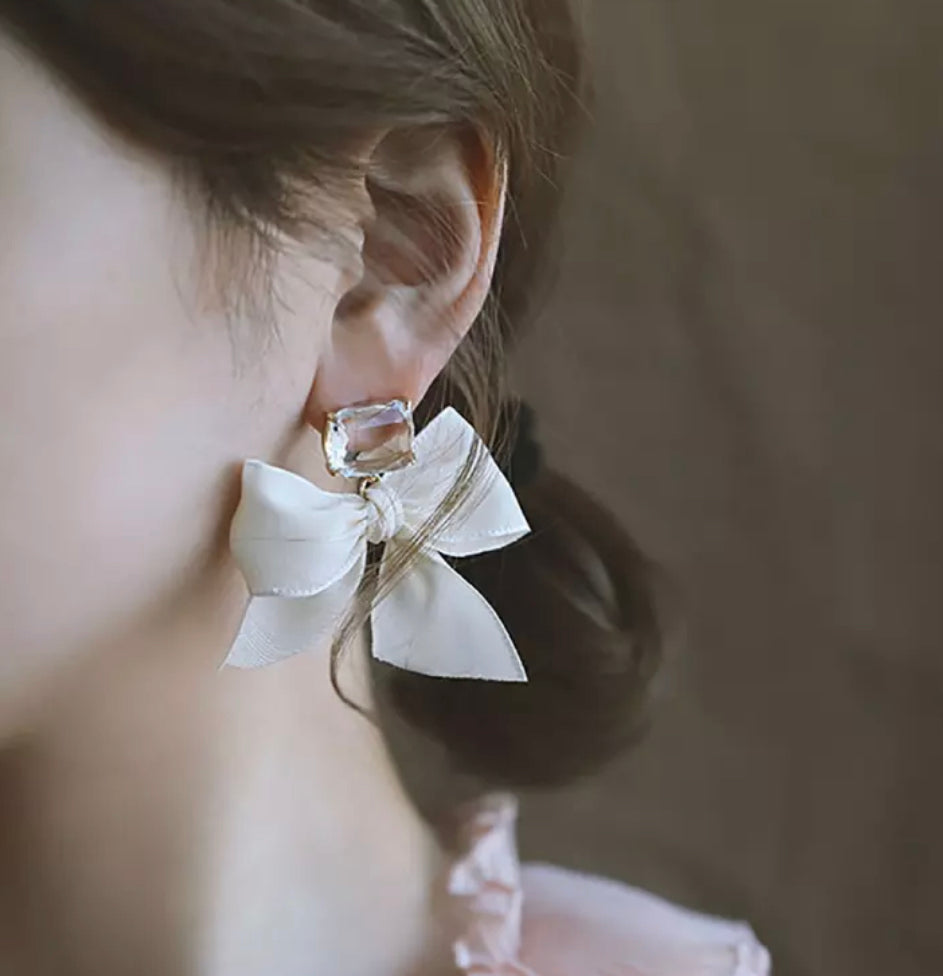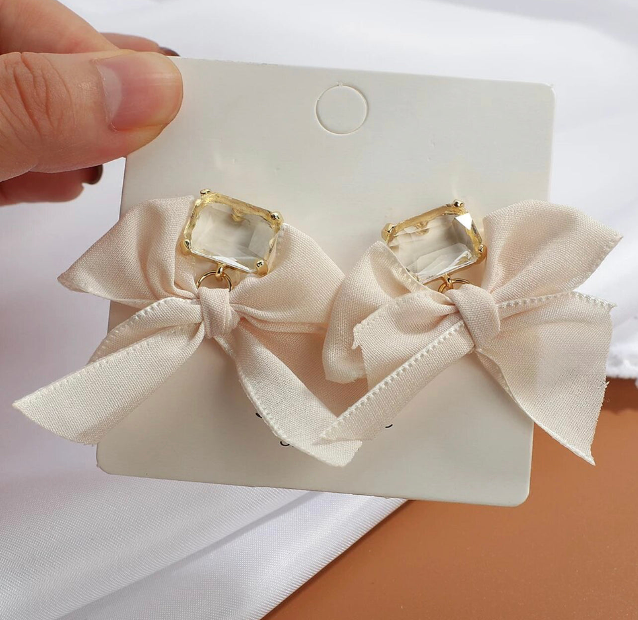 Bow Ribbon With Crystal Gemstone Pushback Earrings | Erika Williner Designs