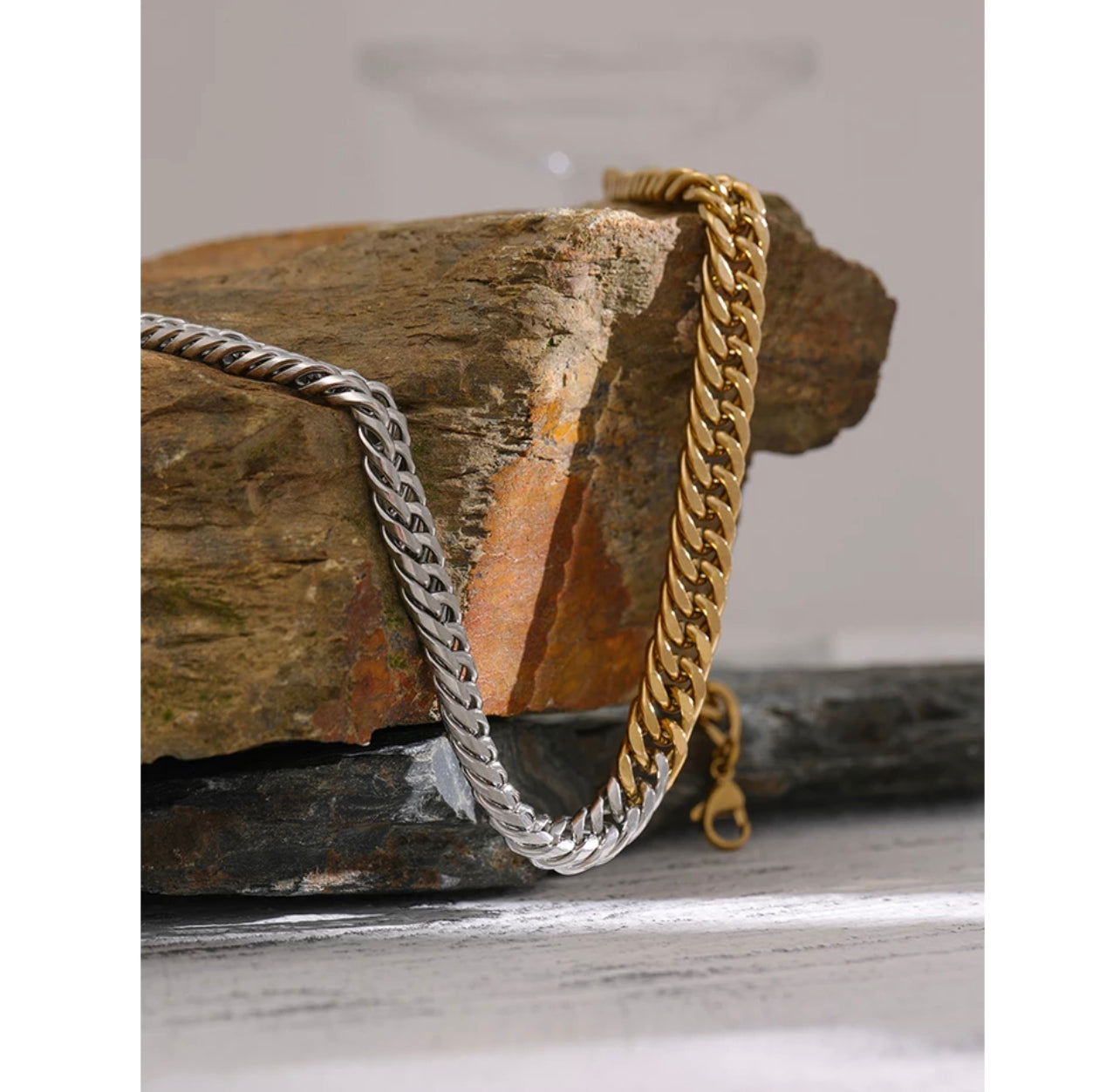 mix stainless steel necklace and bracelet. Cuban style linx.