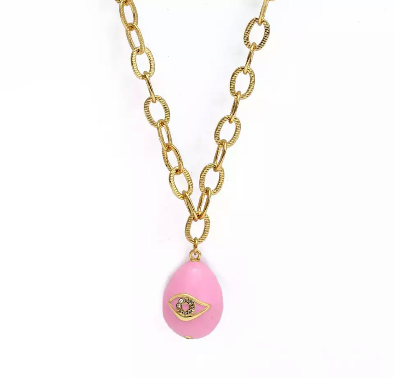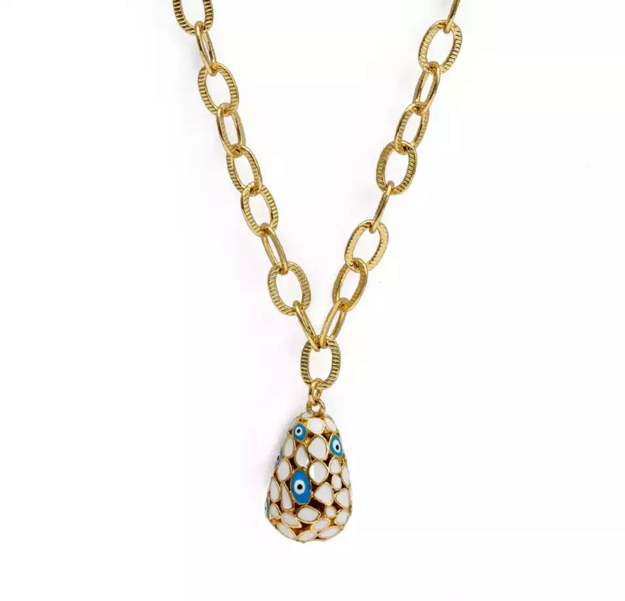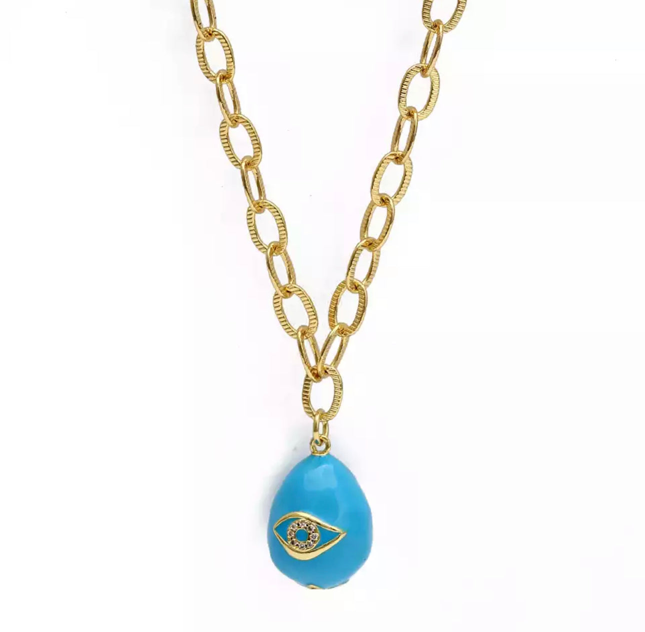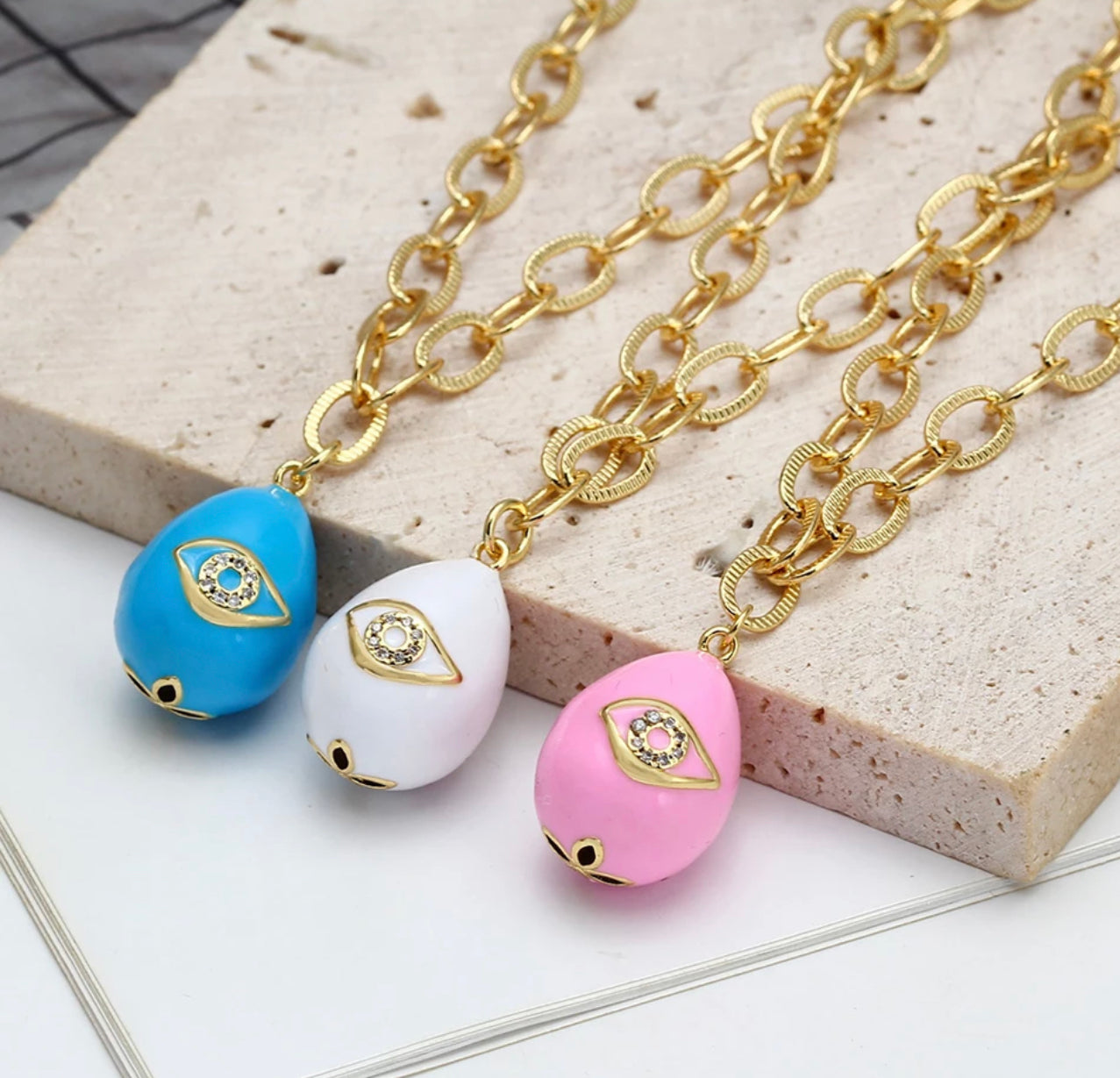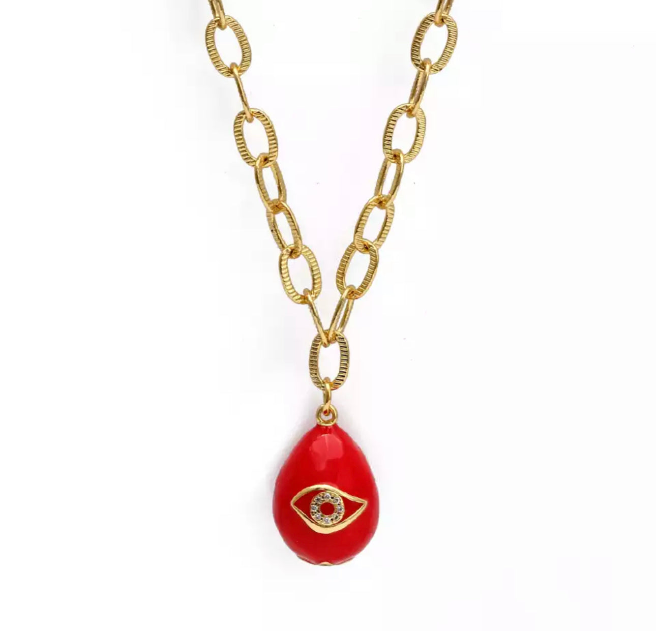 Keep an eye on your style game with this stunning chain link necklace featuring a charming enameled evil eye. Unleash your inner fashionista and ward off any bad vibes in style. (Just don't get too evil with it!)