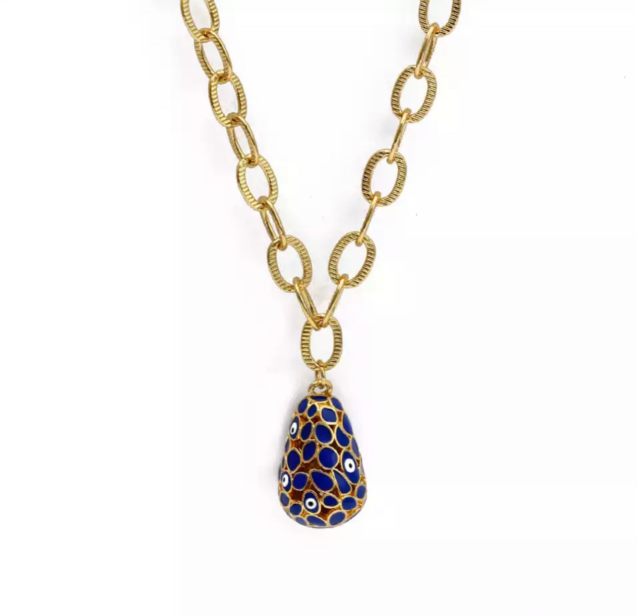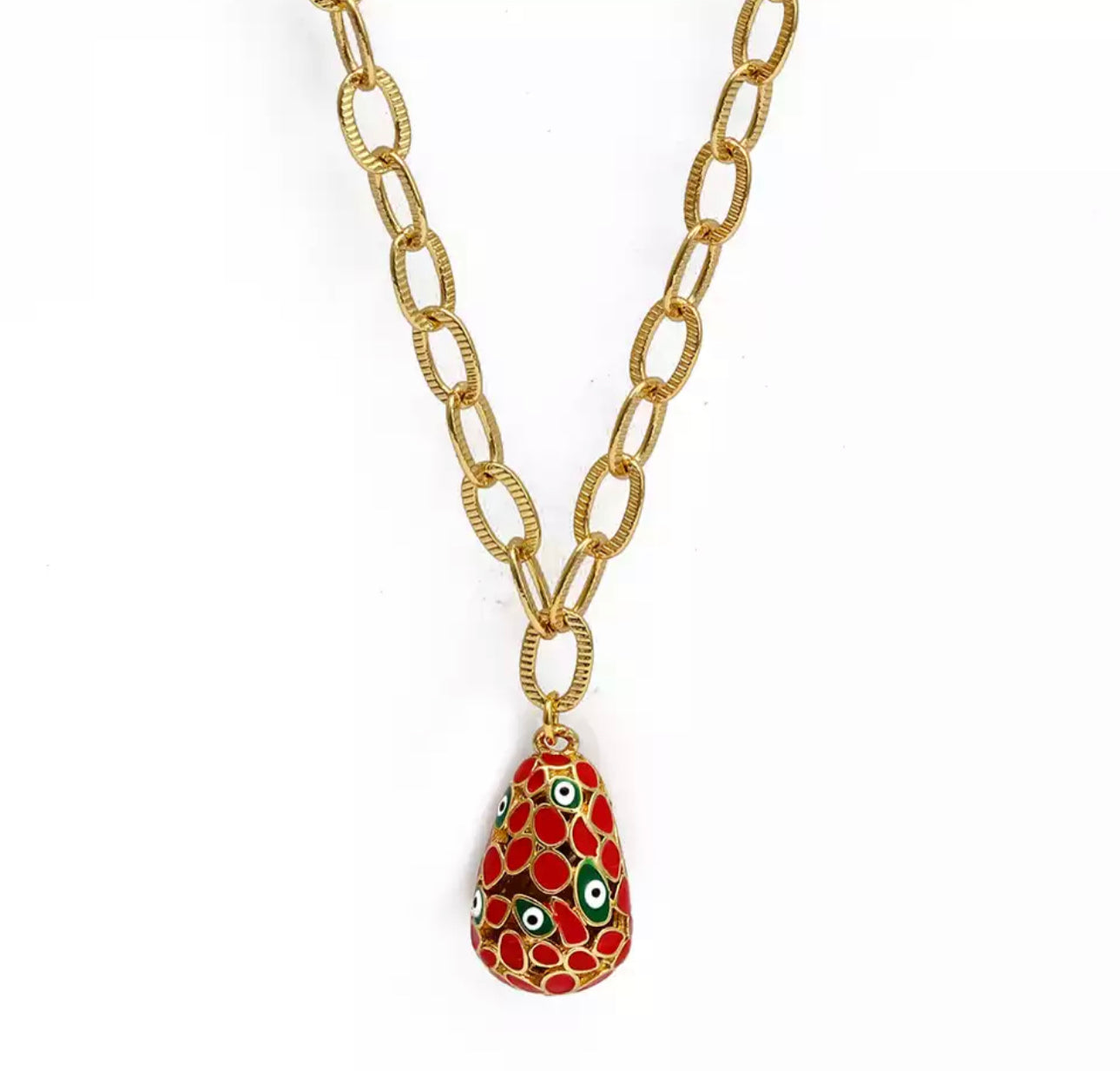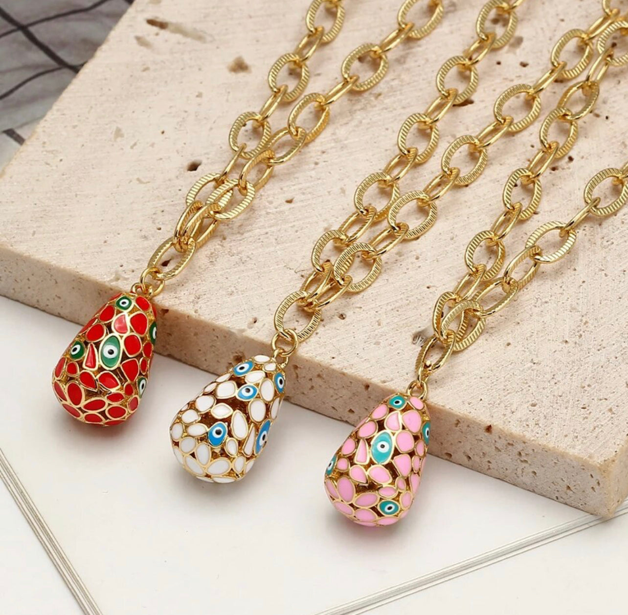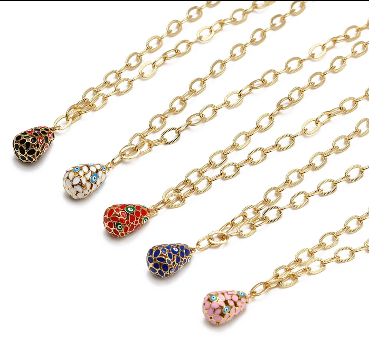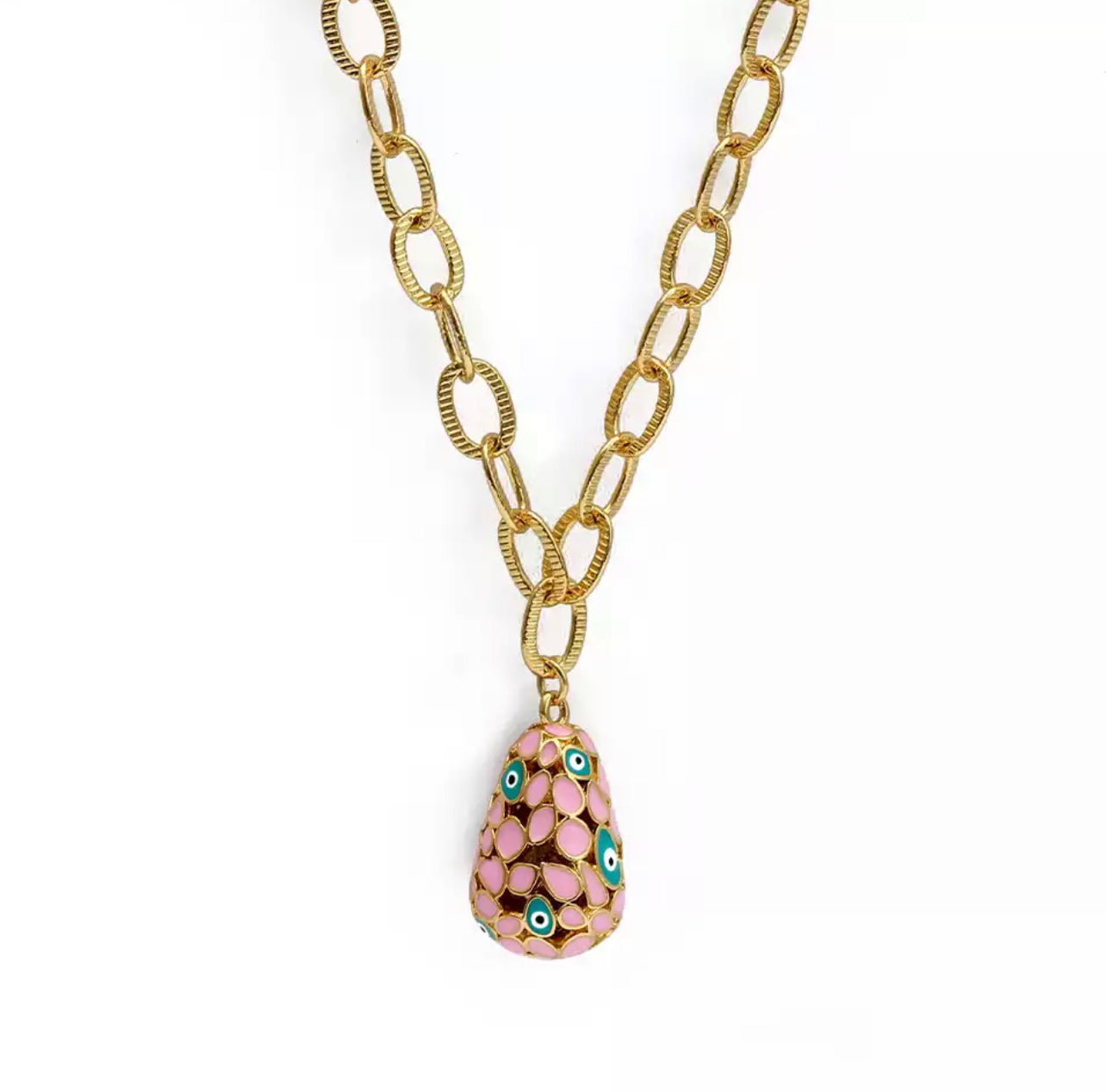 Keep an eye on your style game with this stunning chain link necklace featuring a charming enameled evil eye. Unleash your inner fashionista and ward off any bad vibes in style. (Just don't get too evil with it!)