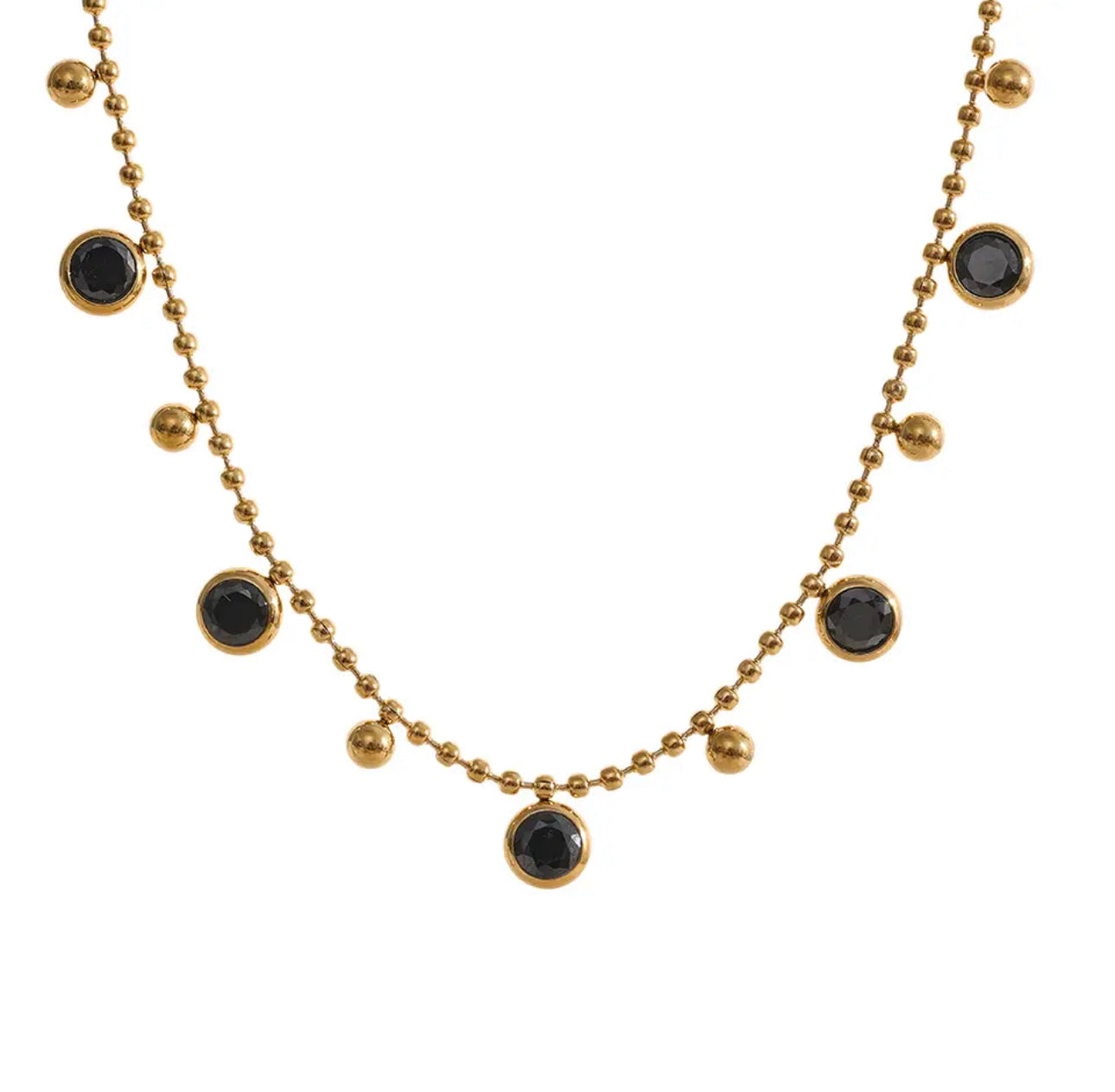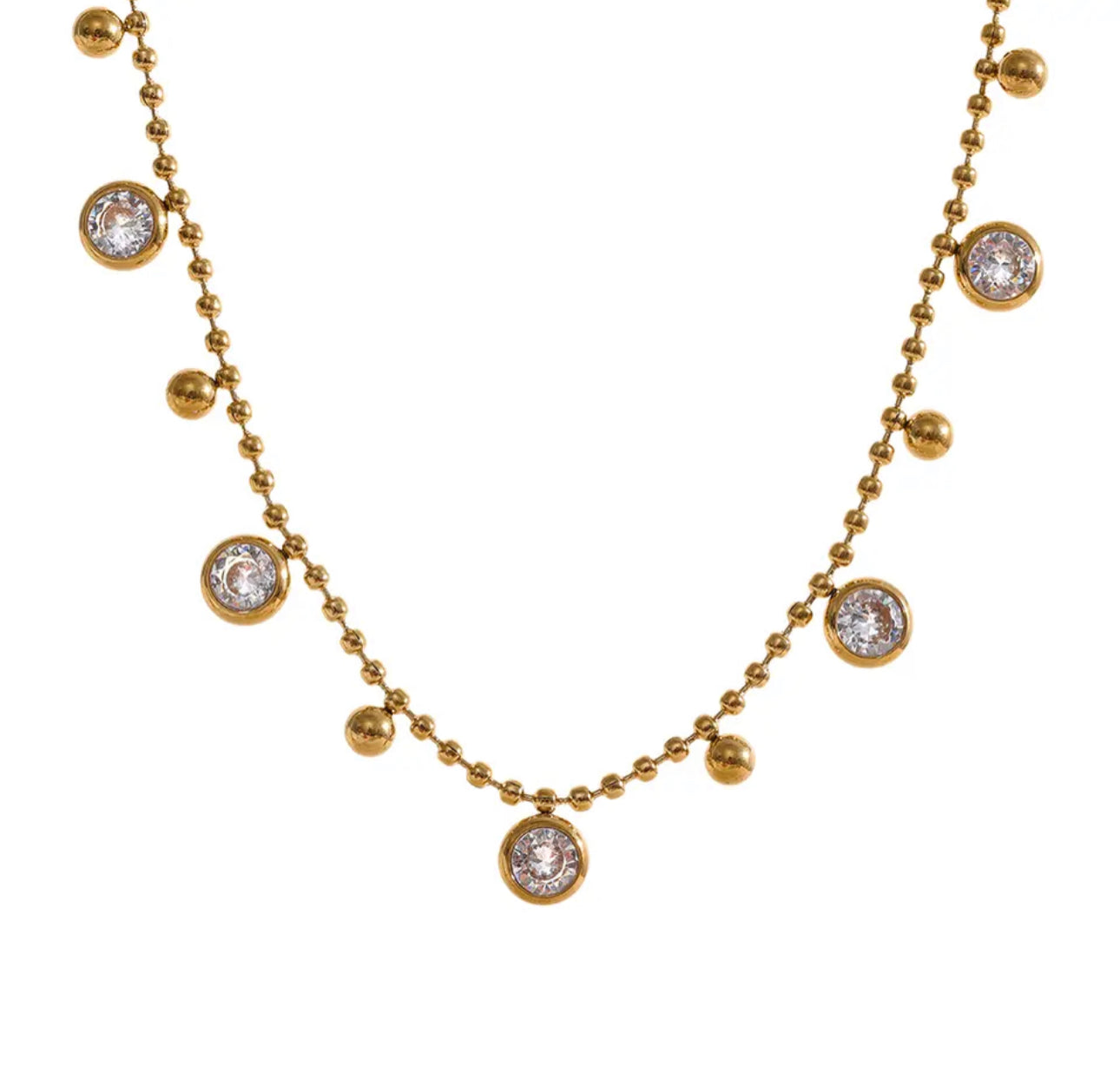 Ball and Chain Stainless Steel Necklace with Zircon Embellish 300-31 | Erika Williner Designs