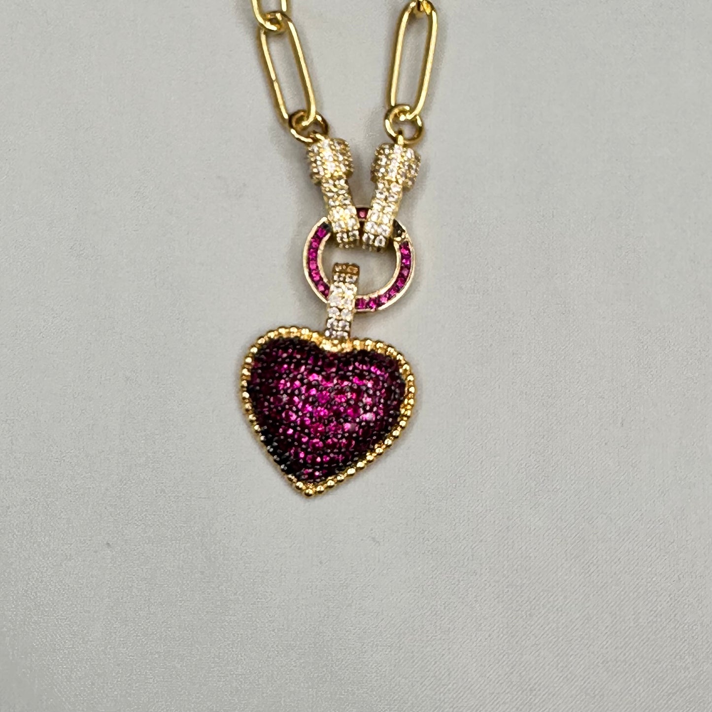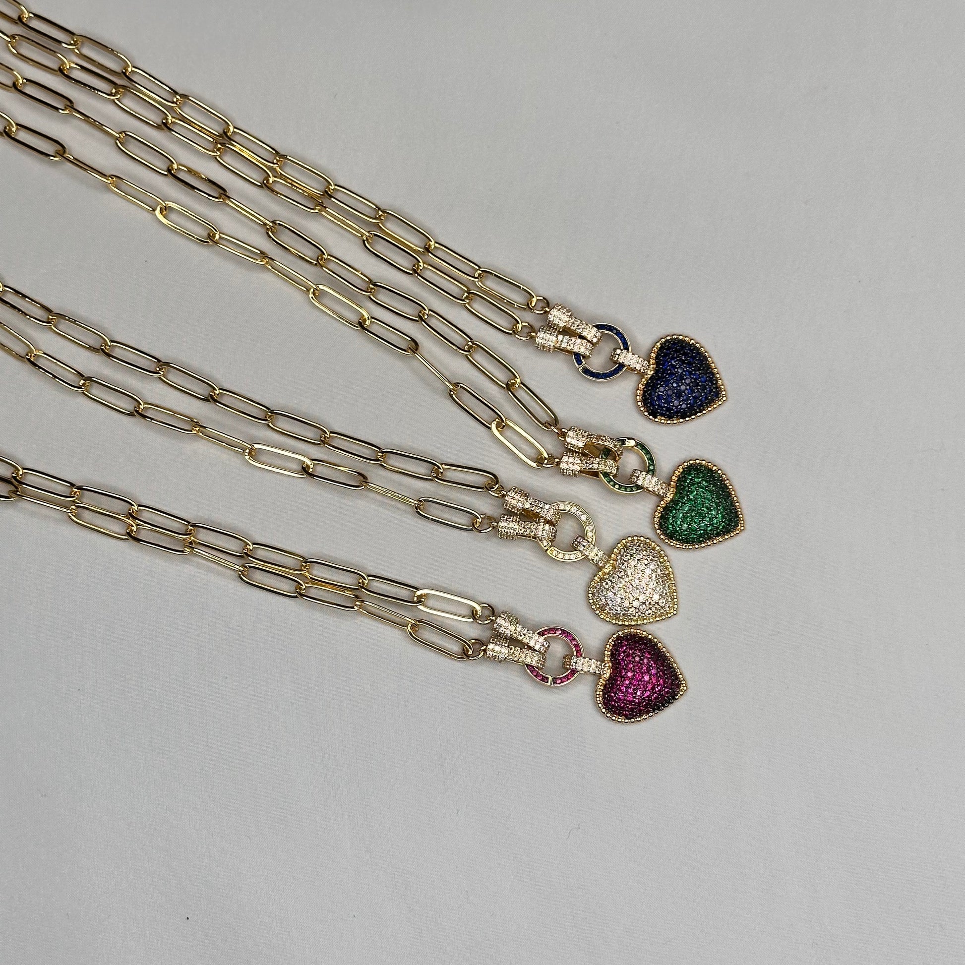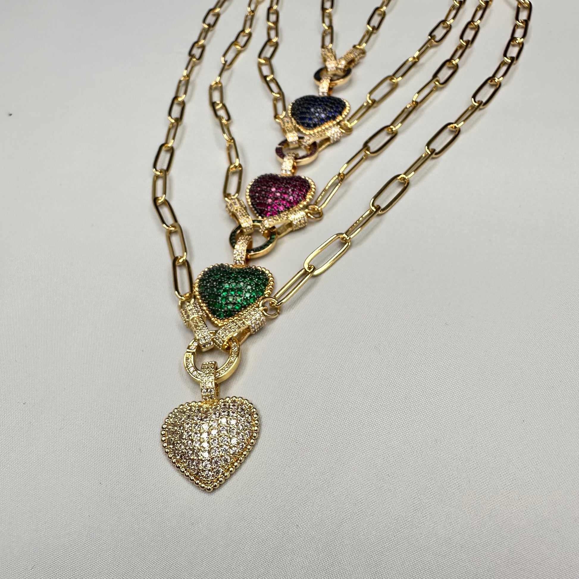 Pave Heart pendant in Paper Clip Chain Necklace | Erika Williner Designs