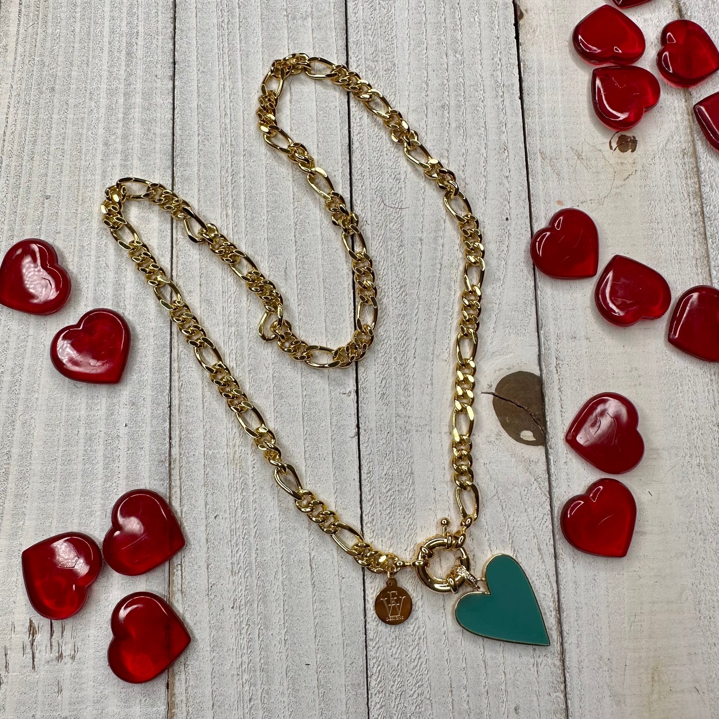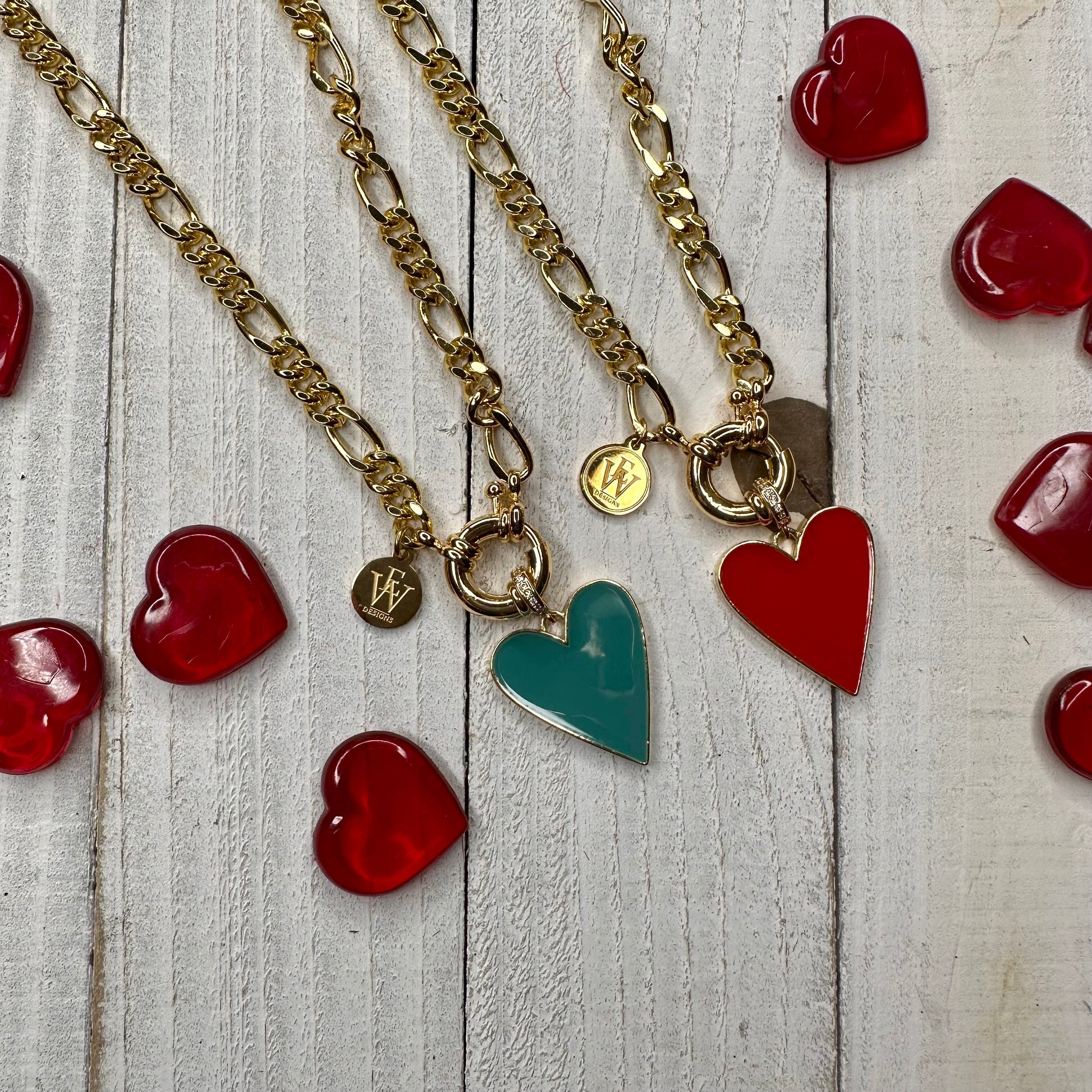 Cuban Link Chain with Enameled Heart Pendant 300-25 | Erika Williner Designs