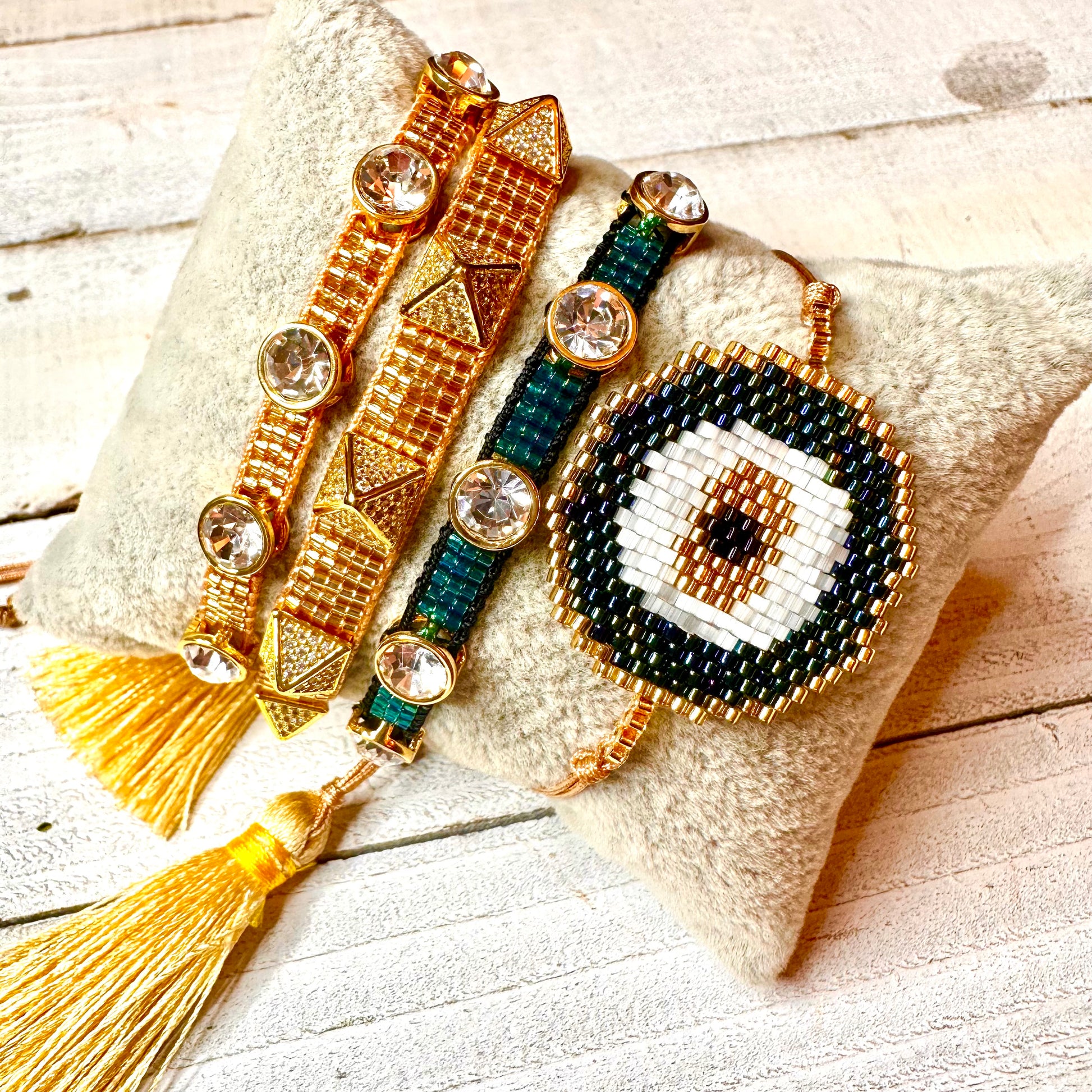 Round Evil Eye Stack of 4 made out of MIYUKI beads 430-16 | Erika Williner Designs