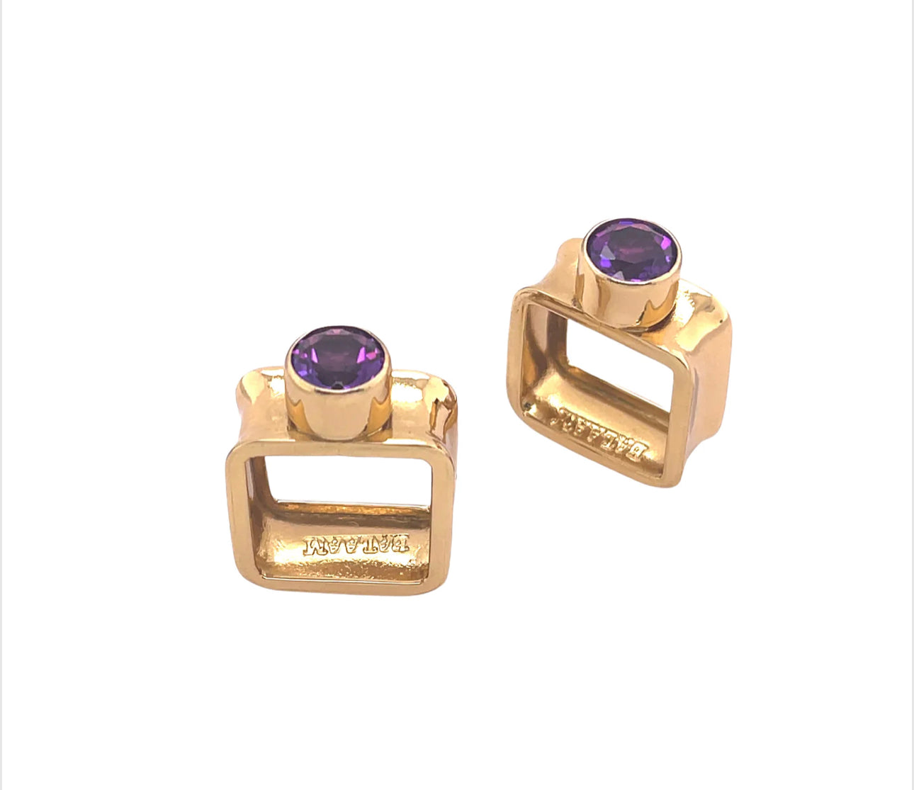 This is a curated piece, hand made in Mexico. High polish finished, 8mm amethyst, lead free, nickel free, hypoallergenic. Baked lacquer finish to protect metal from turning or tarnishing.