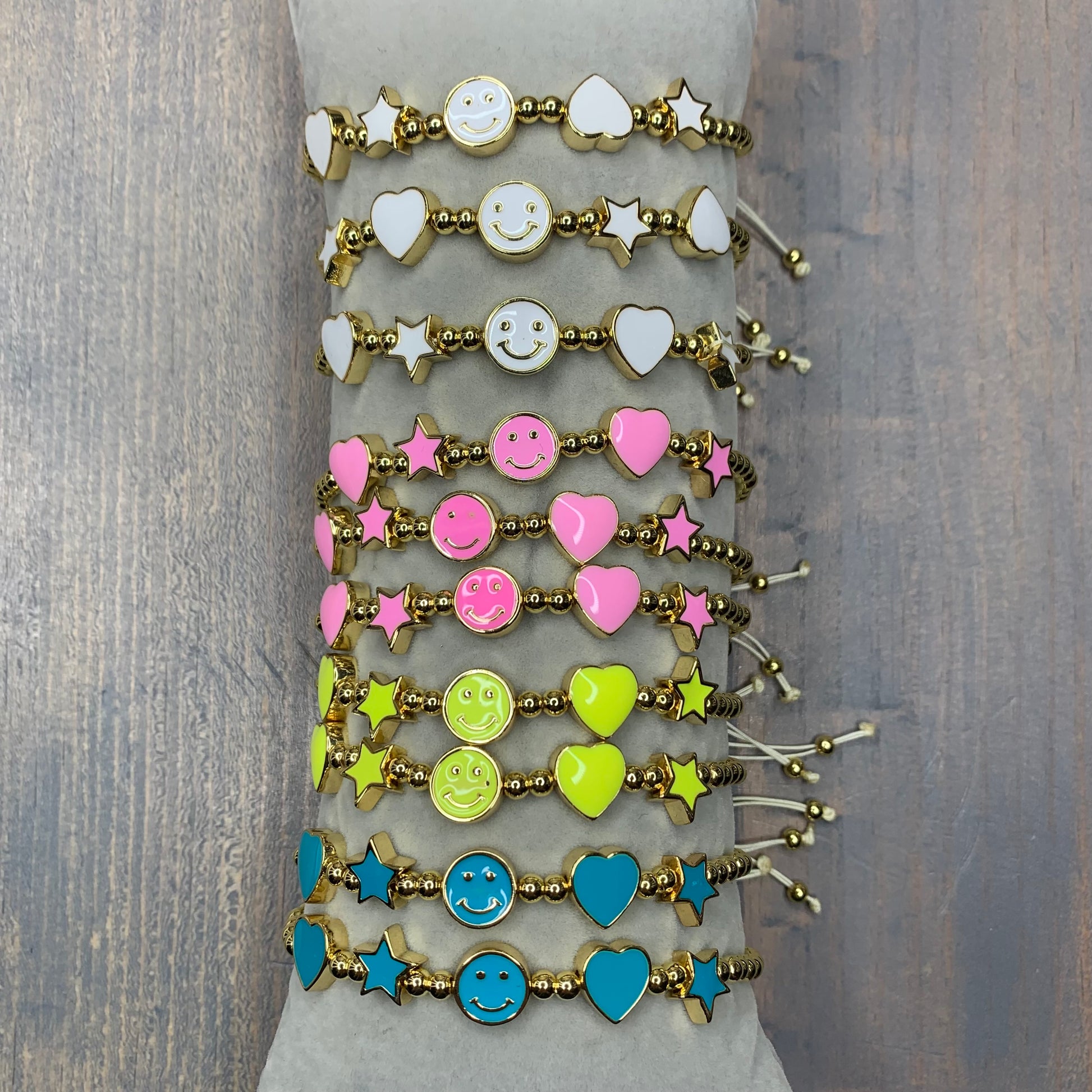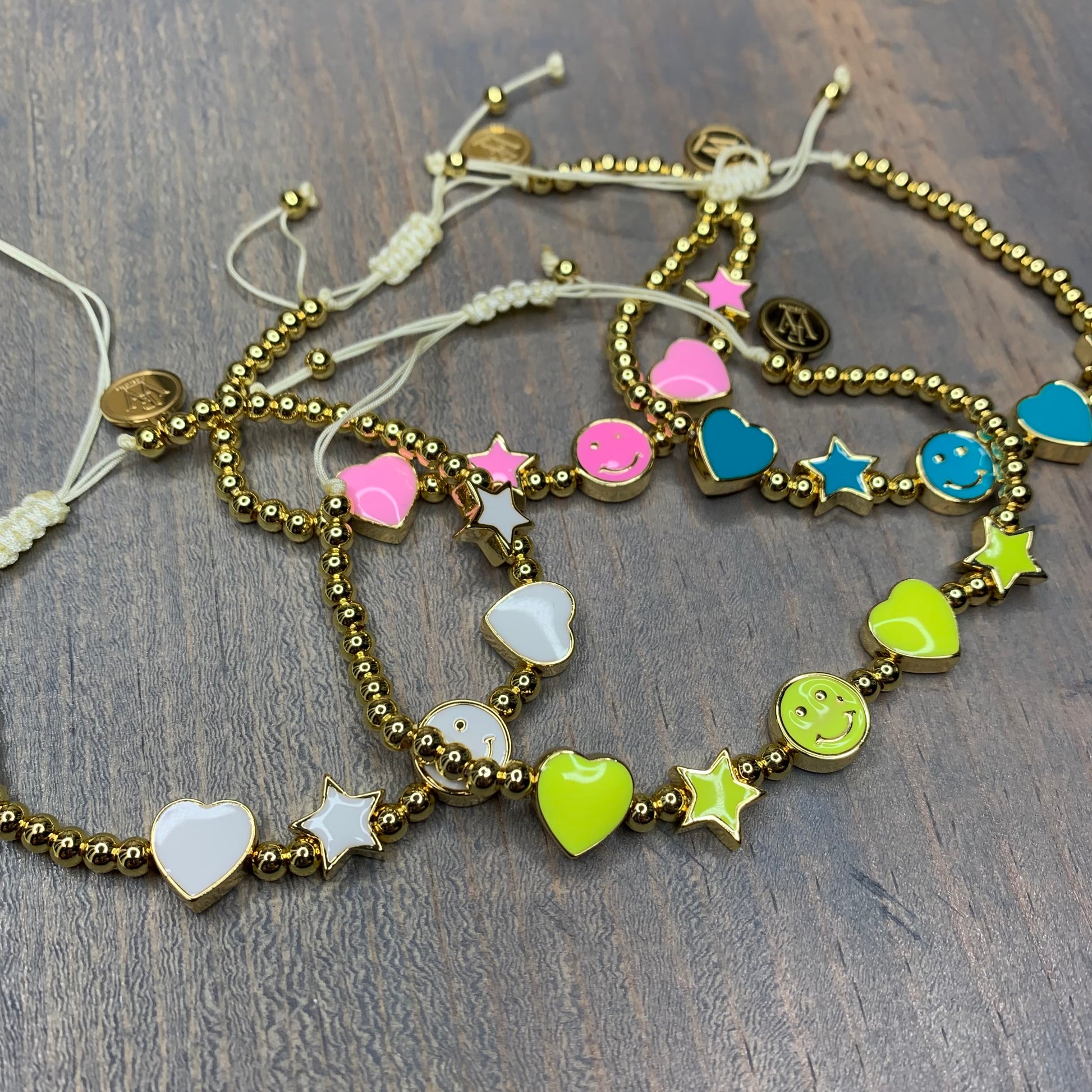 This adorable Erika Williner Design bracelet is made out with enameled beads. Adjustable bracelet.