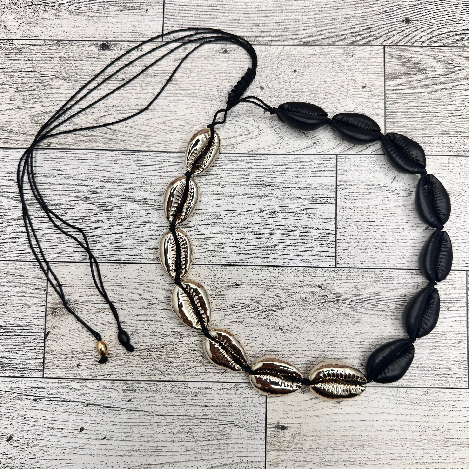 Elevate your style with the Gold and Black Cowry Shells Necklace from Erika Williner Designs. This sophisticated piece pairs natural cowry shells accented in gold and black tones, offering a unique blend of elegance and earthy charm. Perfect for adding a refined touch to any ensemble, it embodies understated luxury and timeless appeal.