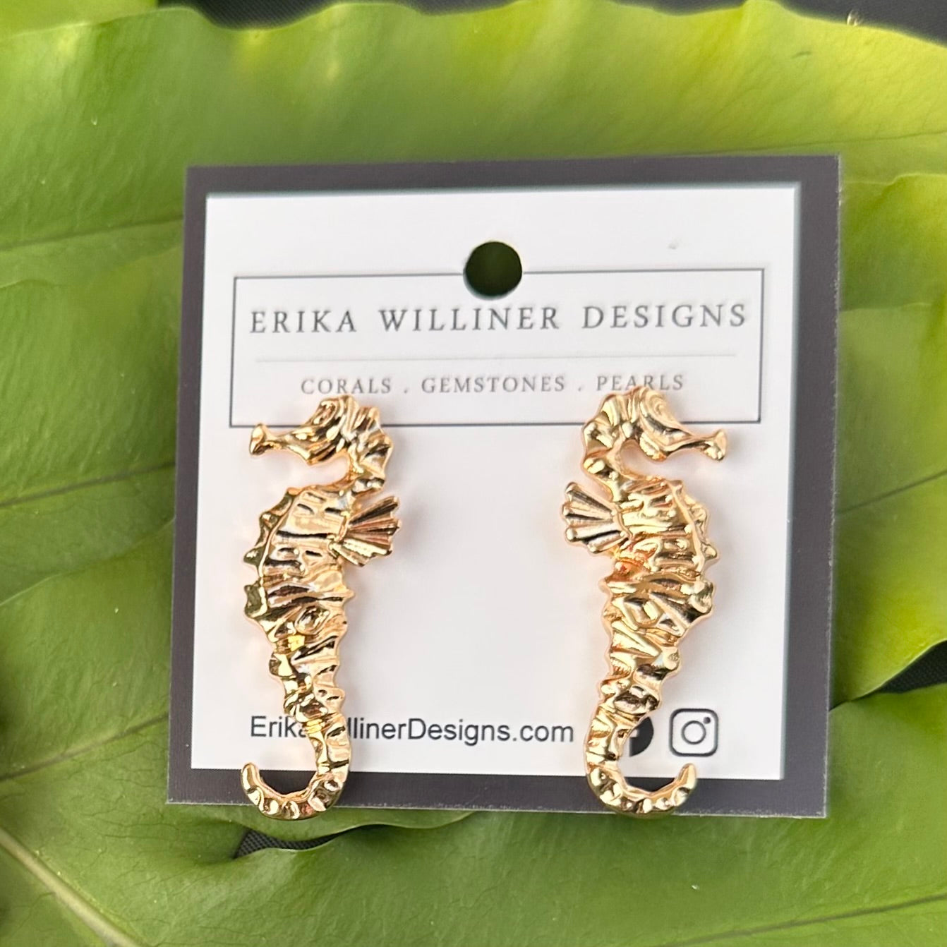 These beautiful Gold Sea Horse Earrings from Erika Williner Designs are the perfect addition to any outfit. The intricate design and high-quality materials make them a unique and stylish statement piece. Plus, they make a great gift for anyone who loves sea life or simply appreciates beautiful jewelry!