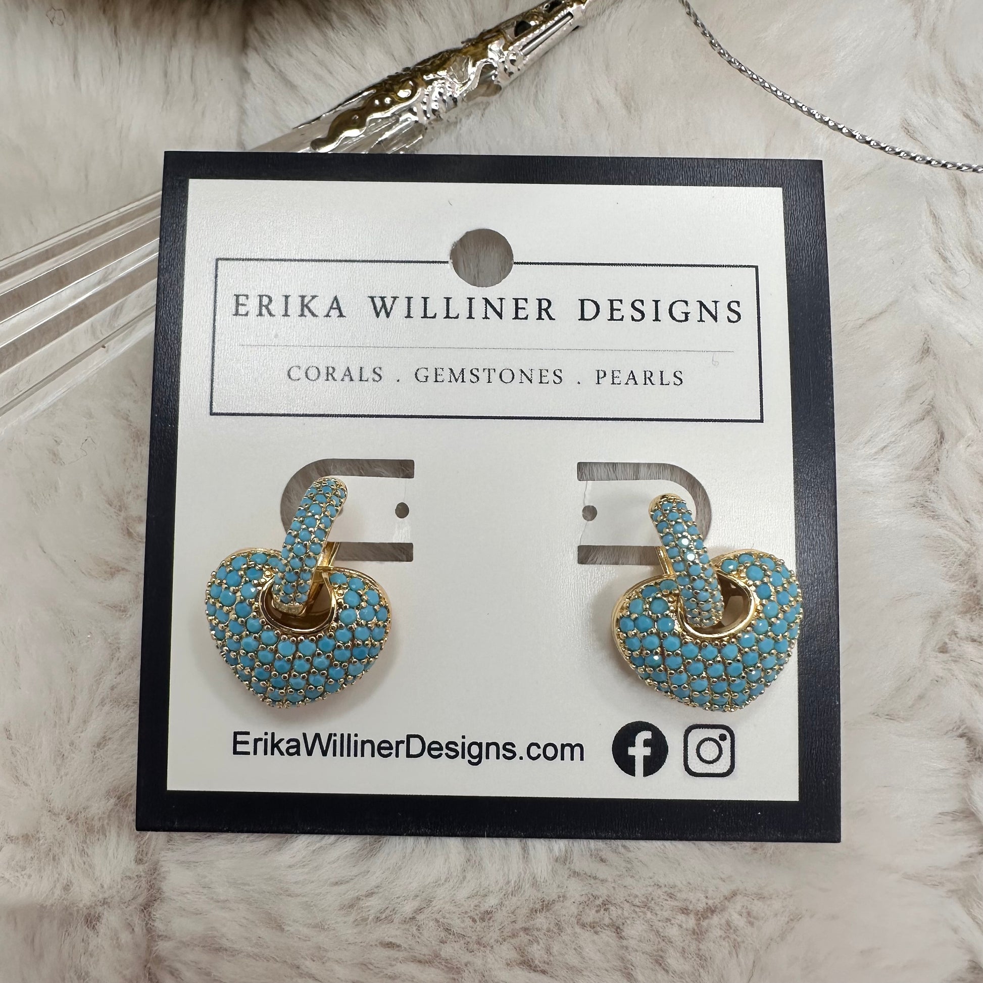 Heart and Hoops Turquoise Mini Pave Earrings | Erika Williner Designs