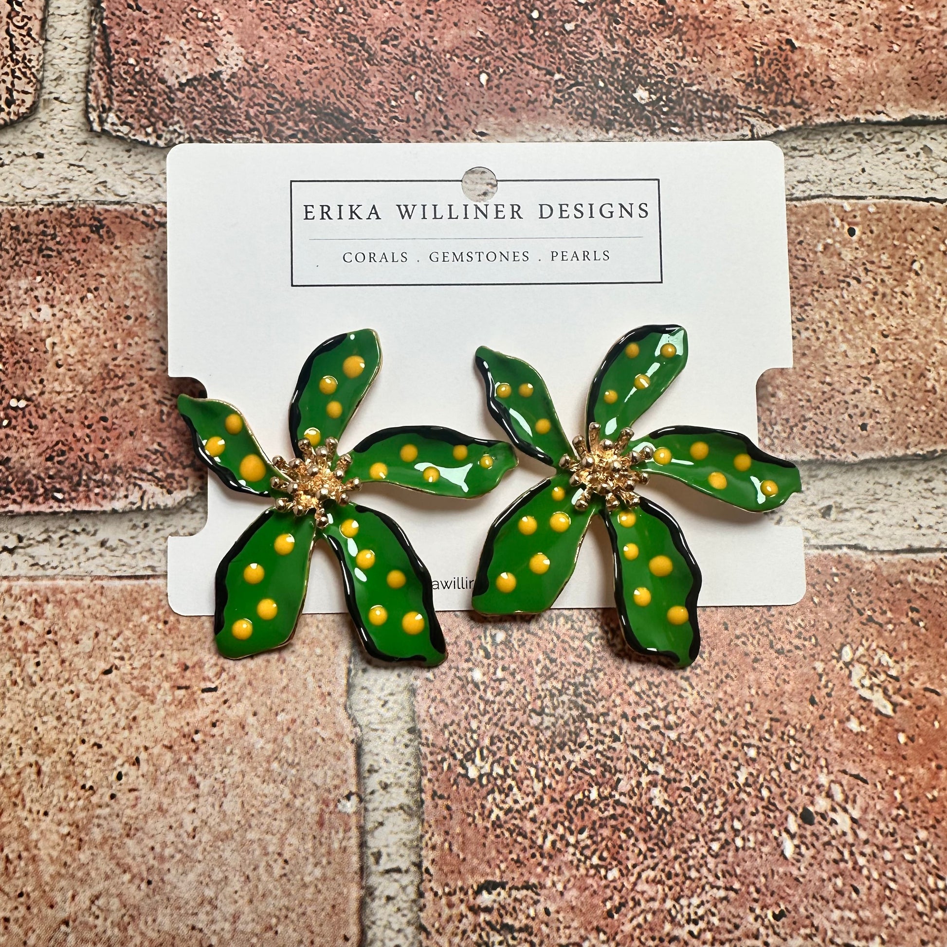 Awaken your inner goddess with our Green Blossoms Earrings, exclusively curated by Erika Williner. With their delicate and intricate floral design, these earrings are a true fashion statement that will elevate any outfit. A perfect combination of luxury and art, they are the epitome of style and exclusivity. Add a touch of elegance to your wardrobe and embrace the beauty of nature with Green Blossoms Earrings.
