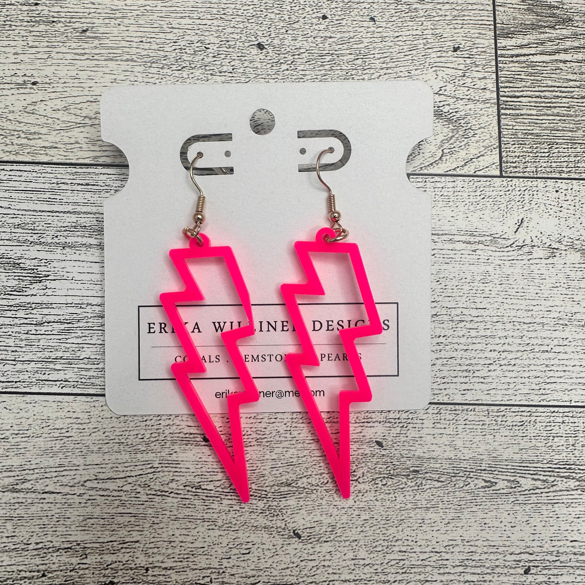 Add a spark of fun to your look with these Hot Pink Lightning cut out earrings from Erika Williner Designs. Their bold color and dynamic shape bring instant energy to any outfit, perfect for those who love to stand out with a playful twist. Lightweight and eye-catching, these earrings are your go-to for electrifying style that never misses a beat.