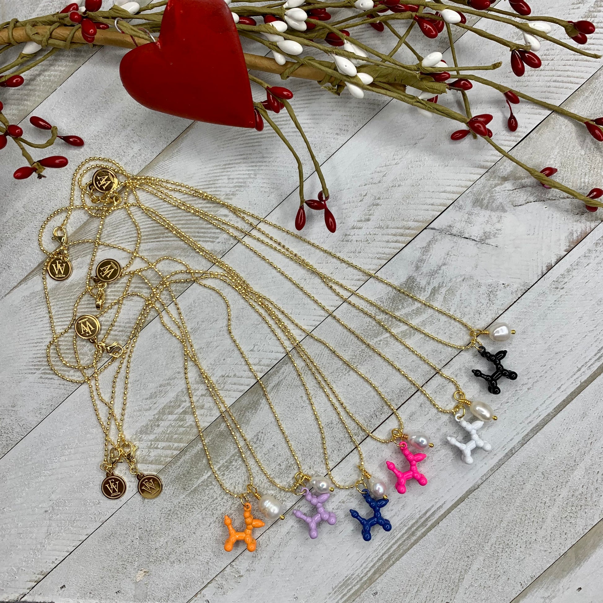 Koons Famous Ballon Dog in an Enamel Pendant Necklace 311-4 | Erika Williner Designs