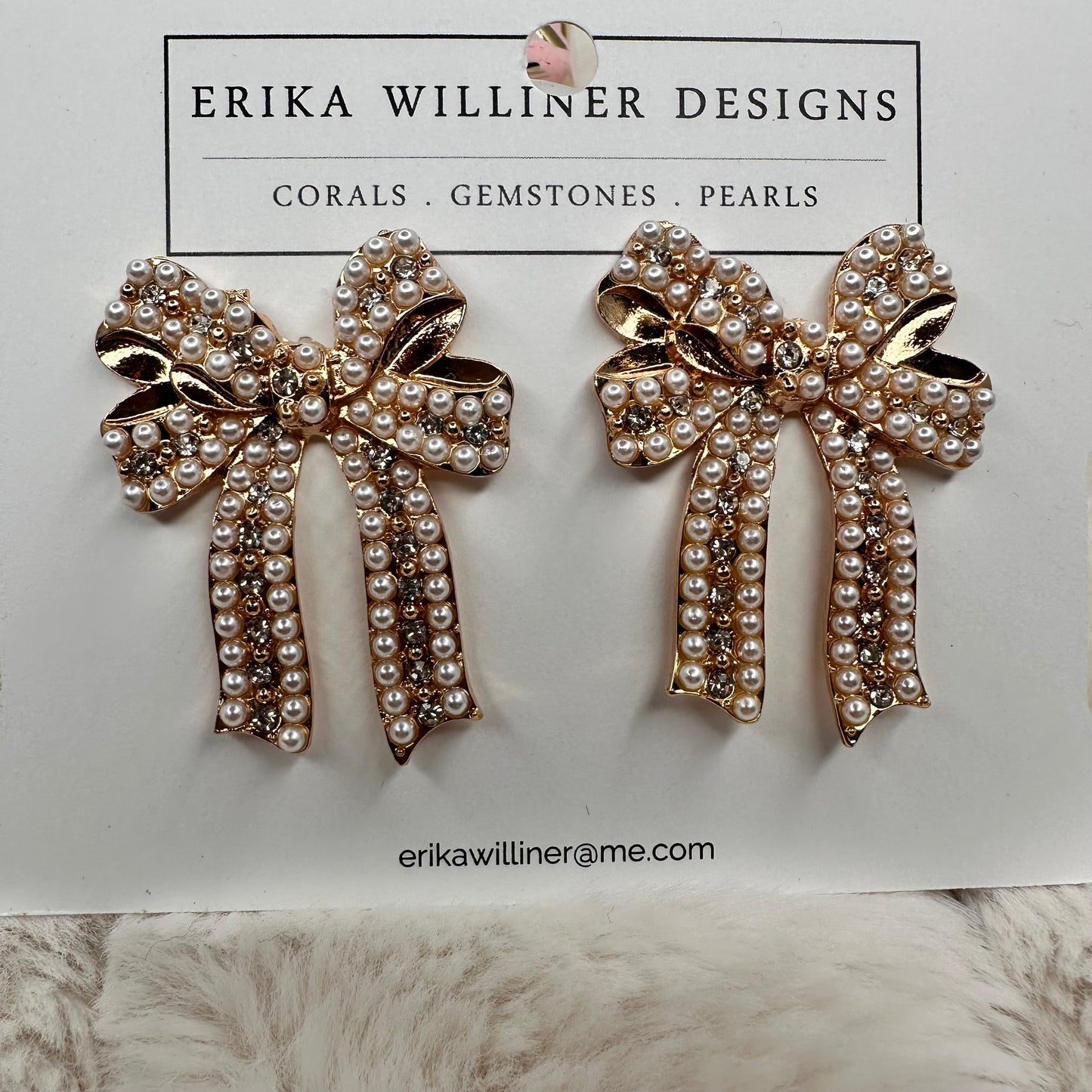 Introducing the fearless and stylish way to elevate your jewelry game! These Long Tail Faux Pearl Ribbon Earrings from Erika Williner Designs will add a touch of boldness and adventure to any outfit.