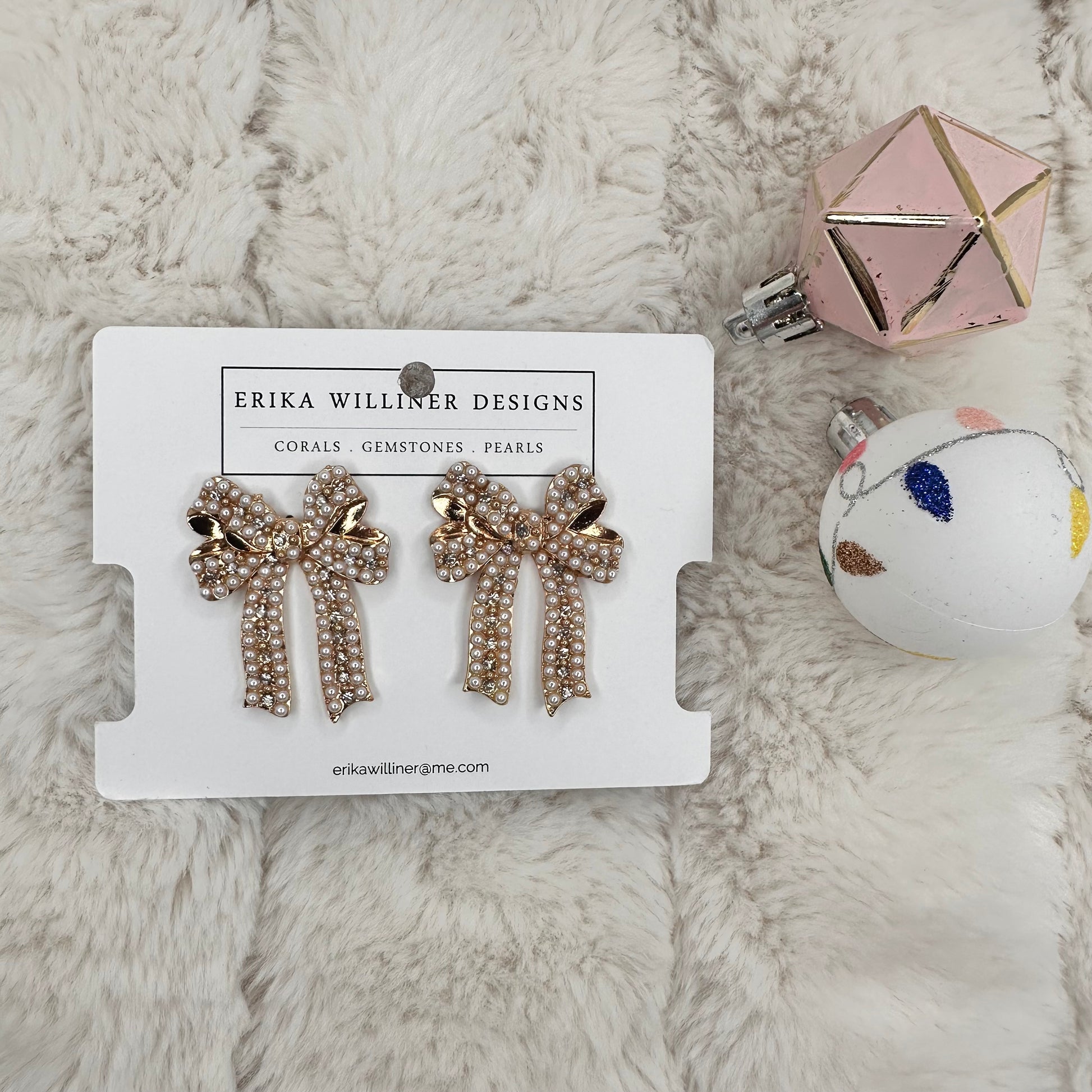 Long Tail Faux Pearl Ribbon Earrings | Erika Williner Designs